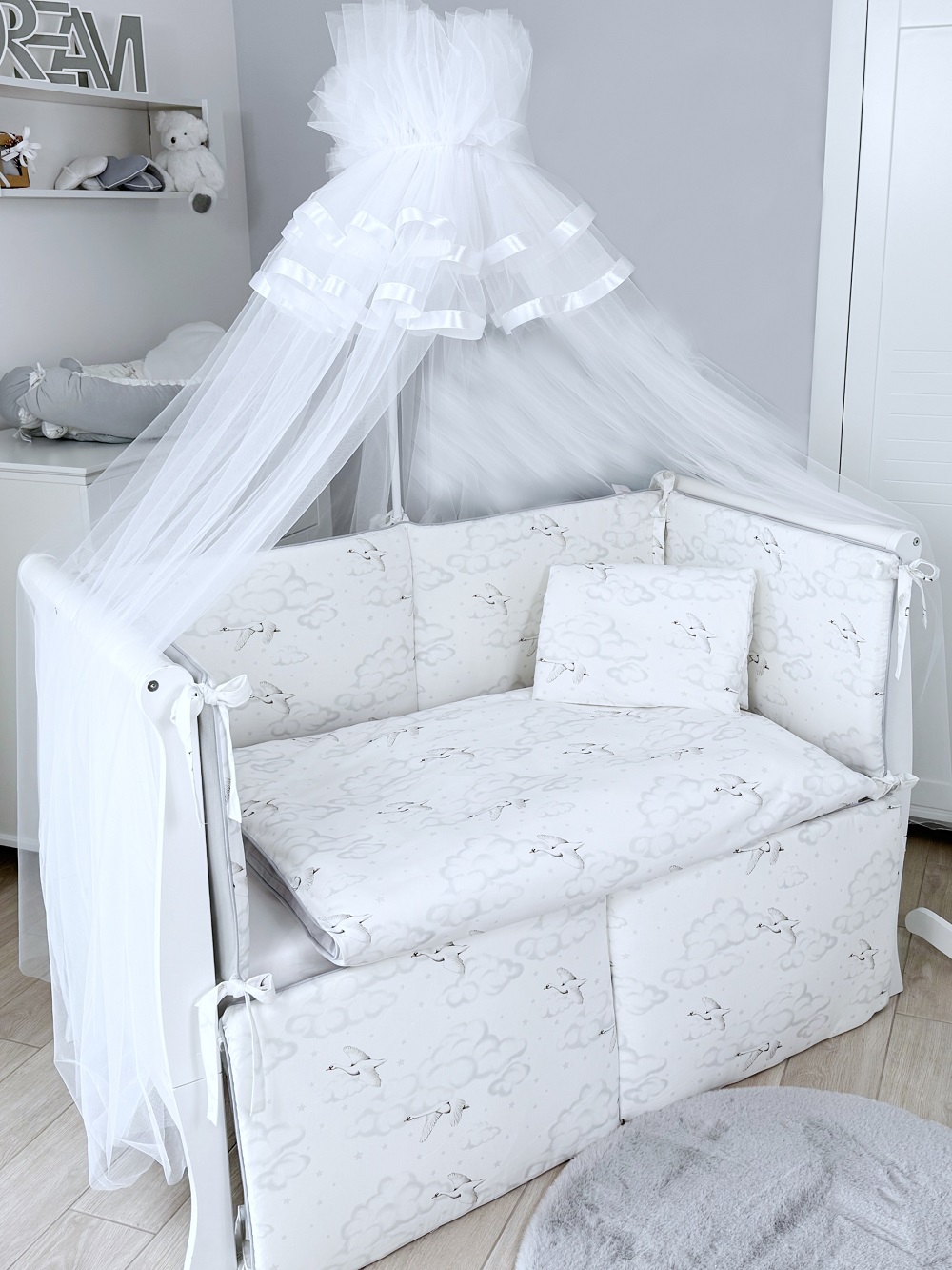 качества, создаст комфорт и уют для чуткого сна малыша. Сертификат OEKO‑TEX Standard 100 и знак CONFIDENCE IN TEXTILES гарантируют безопасность даже для самой чувствительной детской кожи. Все элементы комплекта выполнены из экологически чистых и дышащих материалов, которые не потеряют цвет и внешний вид после стирок. Современный наполнитель из антиаллергенного волокна отлично сохраняет тепло и обеспечивает вентиляцию. Милый дизайн и антиаллергенные свойства материалов делают постельное бельё Lepre лучшим выбором заботливых родителей. СОСТАВ КОМПЛЕКТА: Бампер Дизайн: С одной стороны — принт, с другой — вельвет светло-серого цвета. По краю — серый кант. Состоит из: 4 частей (изголовье, изножье и 2 боковины по 2 секции каждая) Высота: 40 см Крепление: мягкие текстильные завязки Молния: предусмотрена для удобства ухода и стирки Пододеяльник с молнией — 135×100 см Лицевая сторона — с принтом по всей поверхности Обратная сторона — из светло-серого хлопка По краю — светло-серый кант Скрытая молния: не видна снаружи и не мешает ребёнку во время сна Одеяло — 135×100 см Наволочка — 60×40 см Подушка — 60×40 см Простыня на резинке зеленого цвета Подходит для матрасов размером 120×60 см и 125×65 см Уход: стирка в деликатном режиме при 30°C |