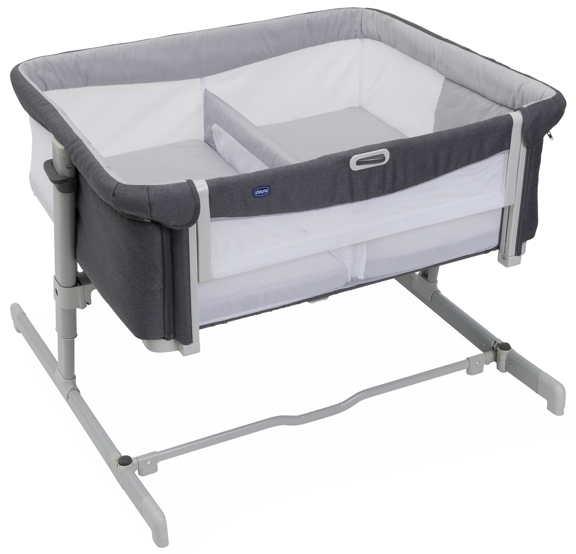 Кроватка Chicco Next2Me Twins Magnet Grey для новорожденных (кикко некст ту ми твинс) - уютная колыбелька для двоих детей с рождения до 6 месяцев. Лучшее решение для совместного сна близнецов. Кроватка оснащена двумя просторными спальными местами с матрасиками в комплекте! Малыши разделены между собой небольшим бортиком с сетчатой вставкой, чтобы дети могли видеть и чувствовать друг друга.