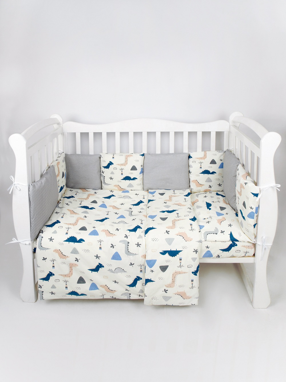 Бортик в кроватку 12 предметов AmaroBaby - Little dino, бежевый/серый