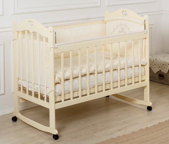 Детская кроватка Farfello Incanto Sofi с сердечком (колесо/качалка) - слоновая кость