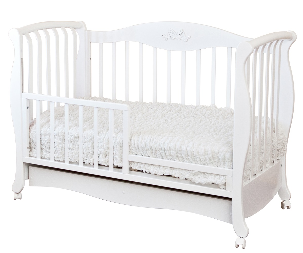 Кроватка выгодно отличается от своей предшественницы "Елизаветы" С550 тем, что данная модель С553 имеет дополнительное низкое ограждение, чтобы подросший малыш проявлял большую самостоятельность. Кроватка декорируется аппликацией "Бабочки" №27.