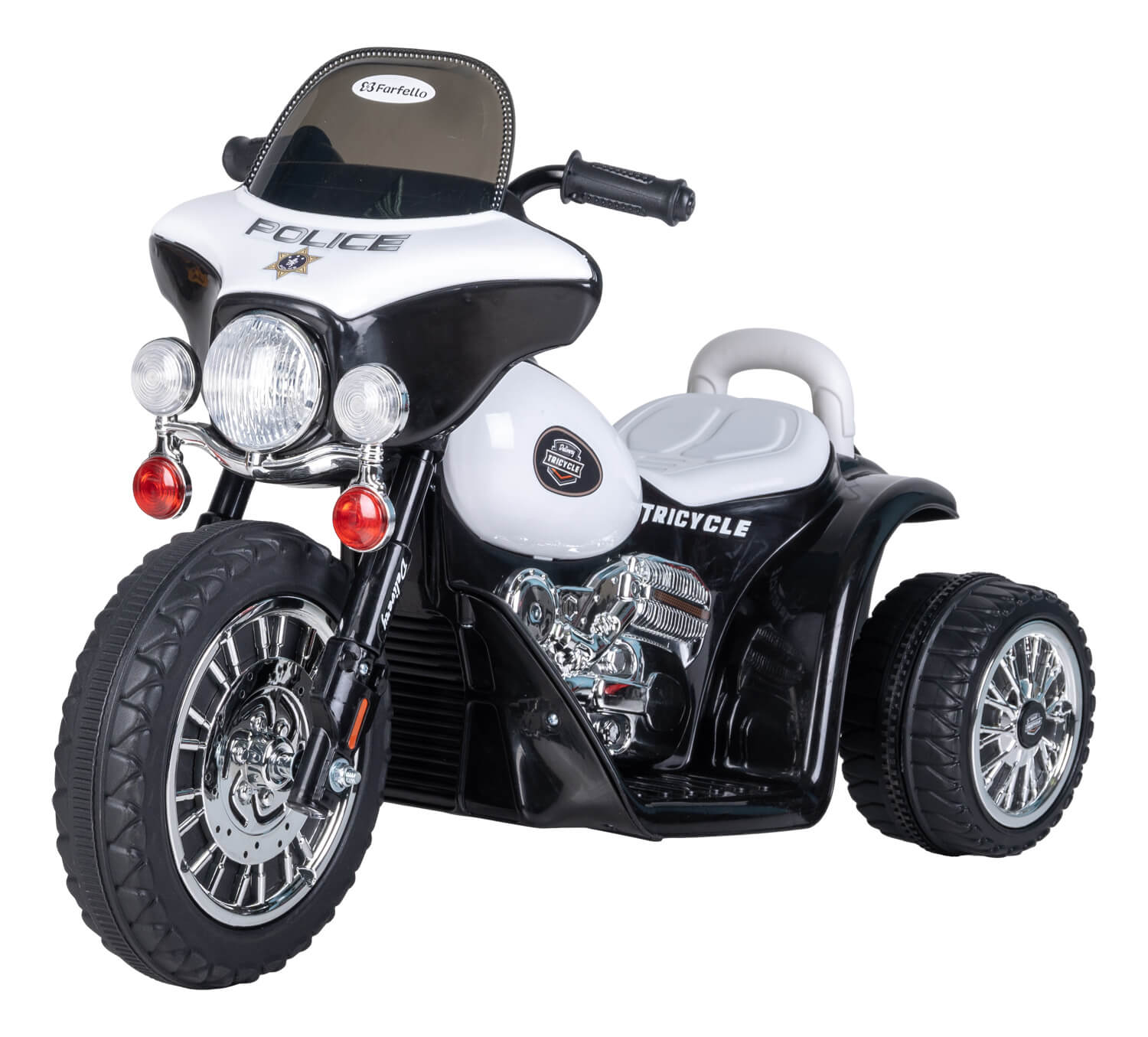 Реалистичный и оригинальный дизайн мотоцикла модели HL404 не оставят равнодушными ни одного малыша. Этот мотоцикл унесет в мир героев полицейских и погони. Но не переживайте, устойчивая конструкция не позволит малышу попасть в аварию или перевернуться. Ваш ребенок будет в безопасности на пути преследования преступников. Корпус выполнен из ударопрочного пластика. Переключение скоростей кнопкой, 2 скорости: вперёд - 4 км/ч и задний ходДвижение осуществляется с помощью педали на подножке. На приборной панели находится кнопки включения звука мотора и сигнала. Высота от подножки до сидения 20 см, Диаметр колёс задних - 18 см, переднее колесо 26 см. Аккумулятор: 6V4,5AH / 390*1.