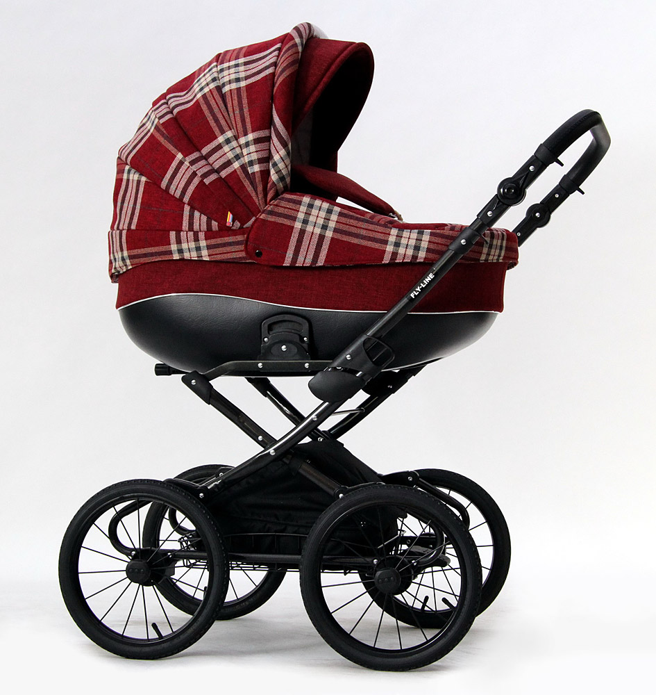 Коляска 2 в 1 Farfello Fly-Line - FY6 бордовый клетка