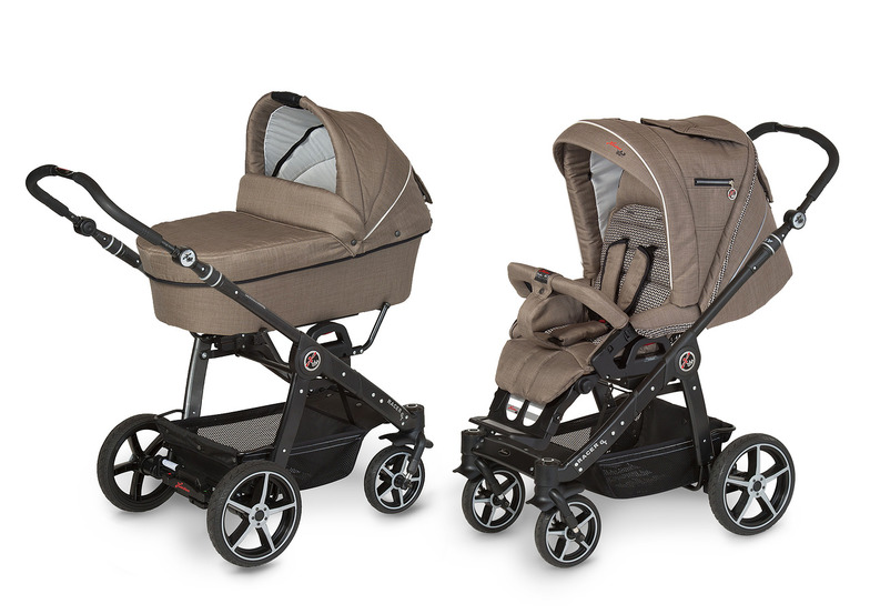Шасси коляски сработано из легкого алюминия и складывается «книжкой». Передние поворотные колеса – маневренны, но имеют опцию блокировки, которая обеспечивает коляске лучшую проходимость на сложных поверхностях. Задние колеса фиксируются ножным тормозом, который сконструирован так, чтобы не пачкать обувь родителей. Телескопическая ручка с эргономичными накладками регулируется под разный рост, будь то рост мамы или папы. При помощи дополнительных адаптеров на шасси можно устанавливать автокресла бренда Hartan.