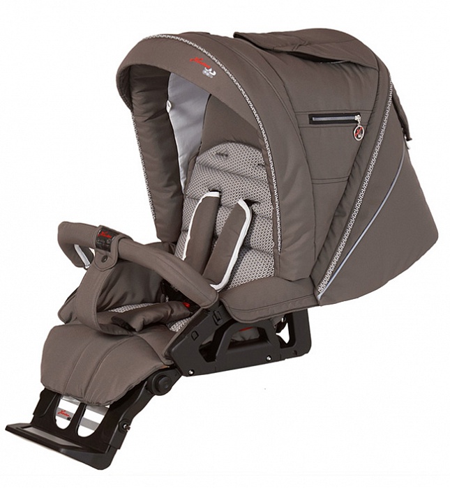 Прогулочный блок для маленьких пассажиров, которые уже умеют держать спинку и сидеть, подходит для комфортных прогулок в любое время года. Наклон спинки прогулочного блока регулируется до горизонтального положения. Широкий капюшон можно регулировать одной рукой, задняя его часть отстёгивается частично или полностью, превращая коляску в летний, хорошо проветриваемый вариант с тентом от солнца. Для зимних прогулок в комплект включена накидка на ножки. В капюшоне есть смотровое окошко с силиконовой вставкой.