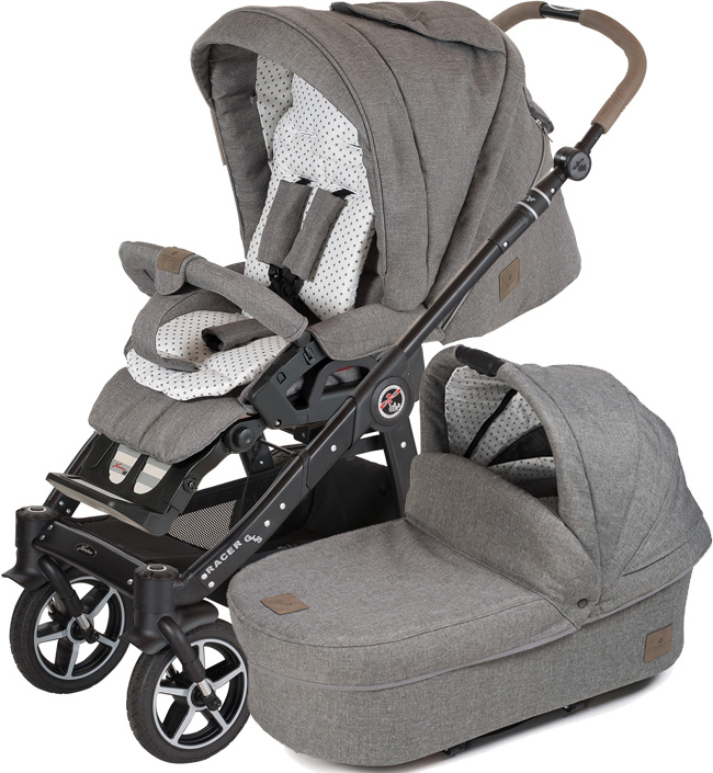 Детская коляска 2 в 1 Hartan Racer GTS XL - комплект из люльки и прогулочного блока, который используется с рождения и до 3 - 3,5 лет. Классическая люлька Trend с кокосовым матрасиком и жестким деревянным дном сконструирована с учетом анатомических особенностей новорожденных. Большой капюшон защитит младенца от ультрафиолетового излучения и непогоды. Положение капюшона регулируется при помощи фиксатора с правой стороны. Автомобилисты и часто путешествующие родители оценят компактность люльки – ее можно сложить до плоского состояния. Сверху есть удобная ручка для переноски.