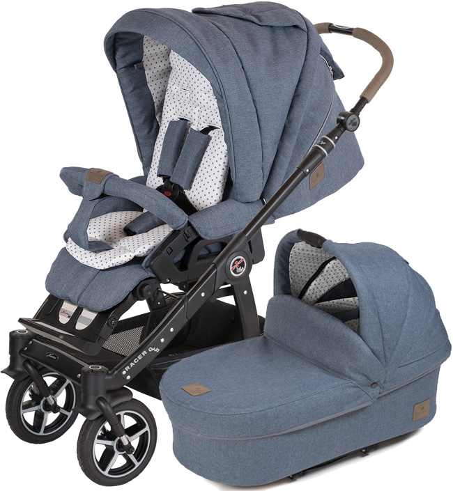 Детская коляска 2 в 1 Hartan Racer GTS XL - комплект из люльки и прогулочного блока, который используется с рождения и до 3 - 3,5 лет. Классическая люлька Trend с кокосовым матрасиком и жестким деревянным дном сконструирована с учетом анатомических особенностей новорожденных. Большой капюшон защитит младенца от ультрафиолетового излучения и непогоды. Положение капюшона регулируется при помощи фиксатора с правой стороны. Автомобилисты и часто путешествующие родители оценят компактность люльки – ее можно сложить до плоского состояния. Сверху есть удобная ручка для переноски.