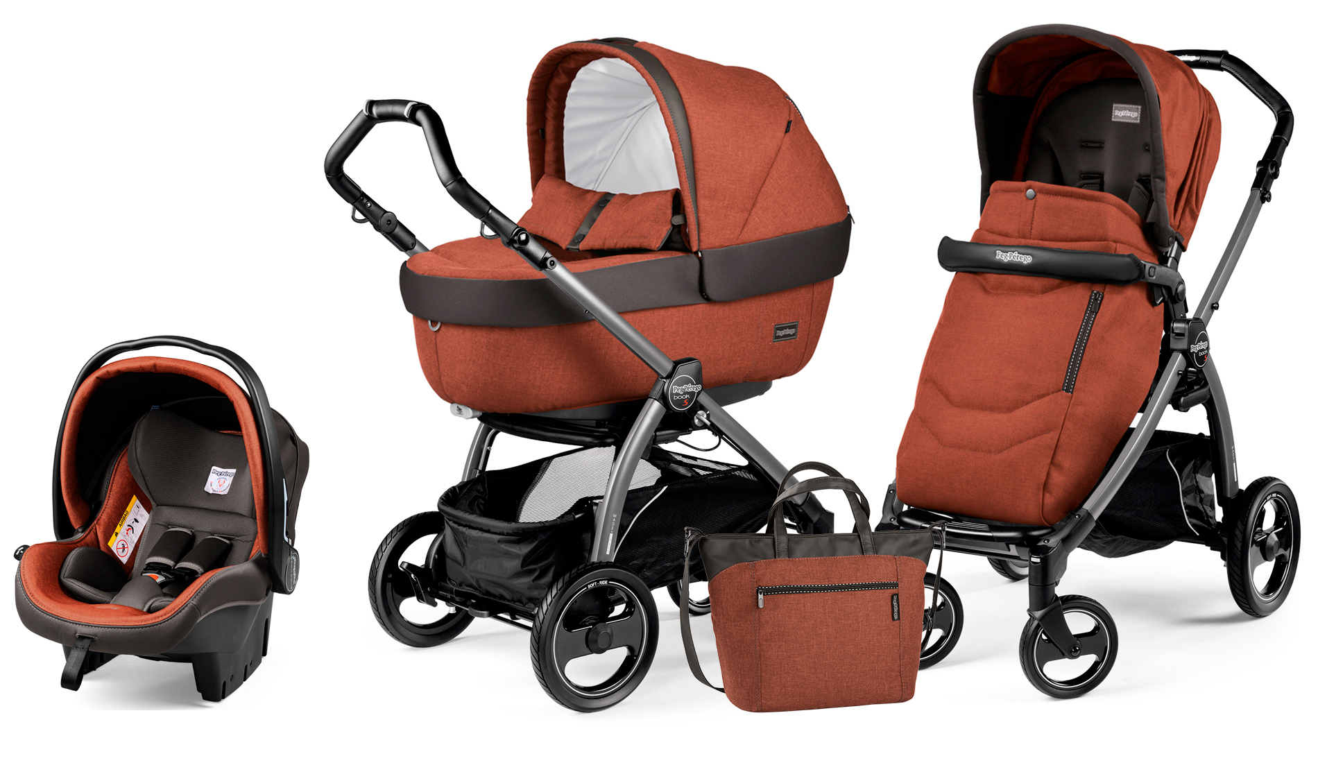 Коляска 3 в 1 Peg Perego Book S Elite Set Modular (шасси Jet) - Terracotta