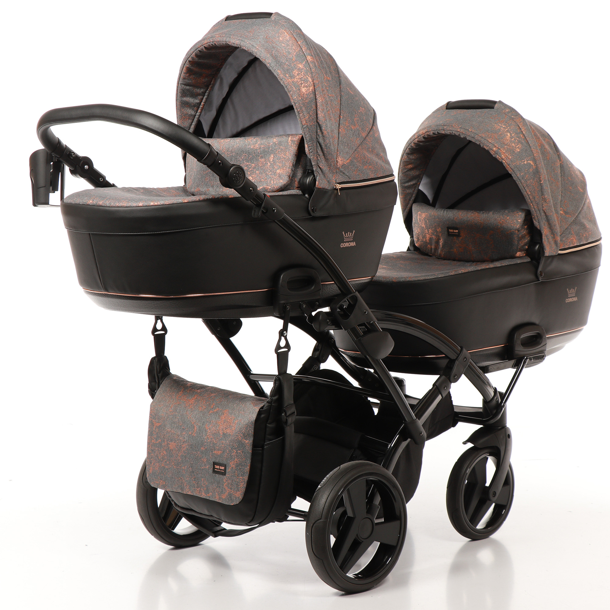 Коляска для двойни 2 в 1 TAKO CORONA DUO slim - TC-01 DUO slim черный/узор медь