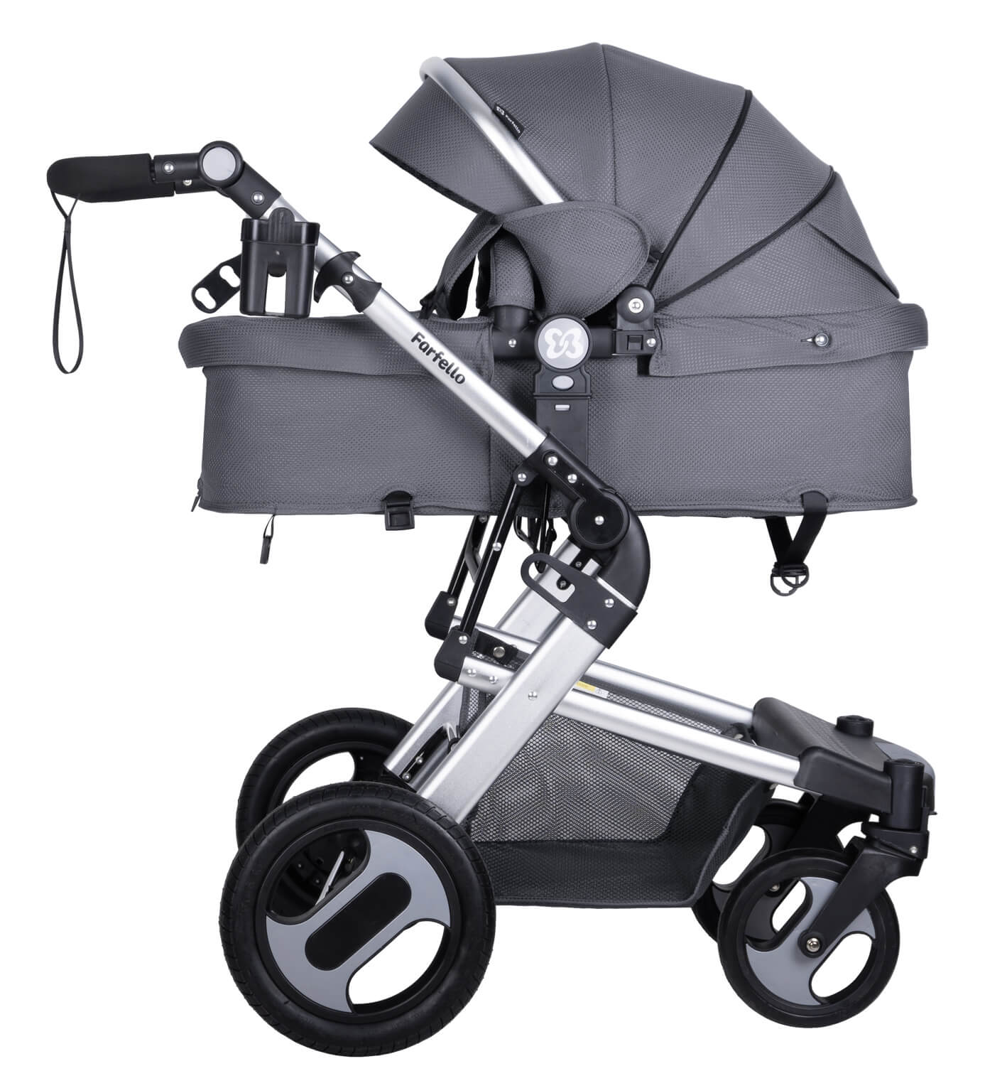 Реверсивный блок даёт возможность установить люльку лицом к родителю и по ходу движения. Наклон спинки удобно отрегулировать с помощью ременной системы. А за безопасность отвечают съёмный бампер и пятиточечные ремни с мягкими накладками. Так же для дополнительной безопасности и комфортной поездки на раме предусмотрен фиксатор для люльки.