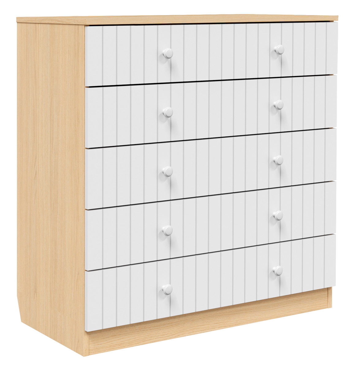 Фасады имеют вертикальную фрезеровку, которая придает комоды дополнительного шарма.