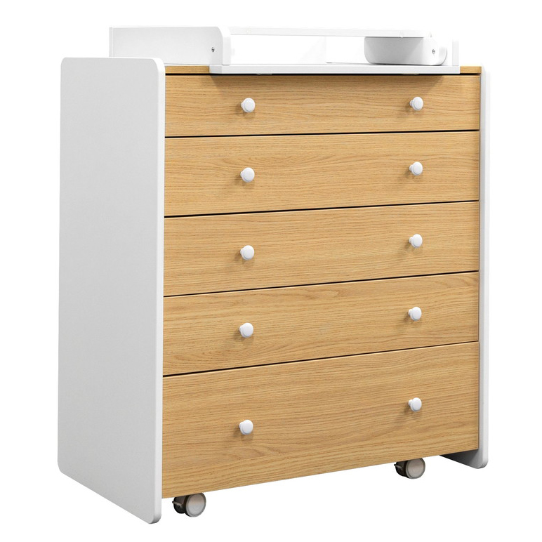 Комод Mari - это комод, созданный в современном стиле с учетом эргономики и трендов в индустрии детских товаров. Комод можно установить на колеса, что позволит беспрепятственно убираться за ним даже женщине. Пять вместительных ящиков на направляющих полного выдвижения с тихим ходом помогут сэкономить место и уложить все вещи по местам. В комплекте к верхнему ящику идет органайзер с секциями, для разграничения пространства. Боковые стенки изготовлены из экологически чистого материала, покрытые износостойкой безопасной краской. Складной универсальный пеленальный столик идет в комплекте.