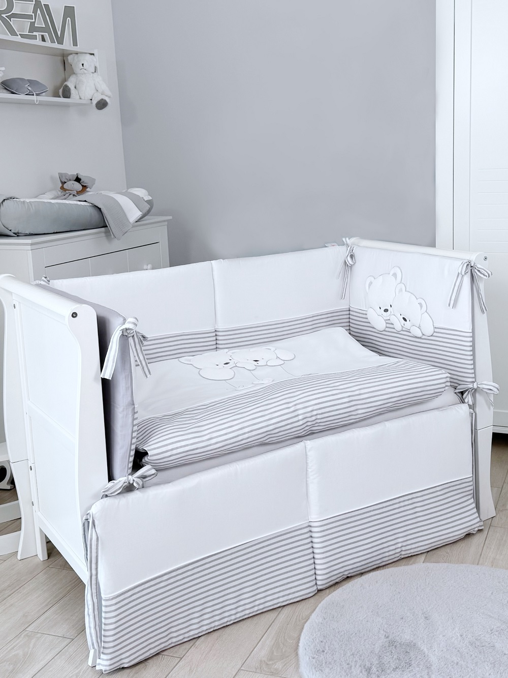 Комплект постельного белья Lepre Sweet Bears 6 предметов (125*65) - белый/серый в полоску