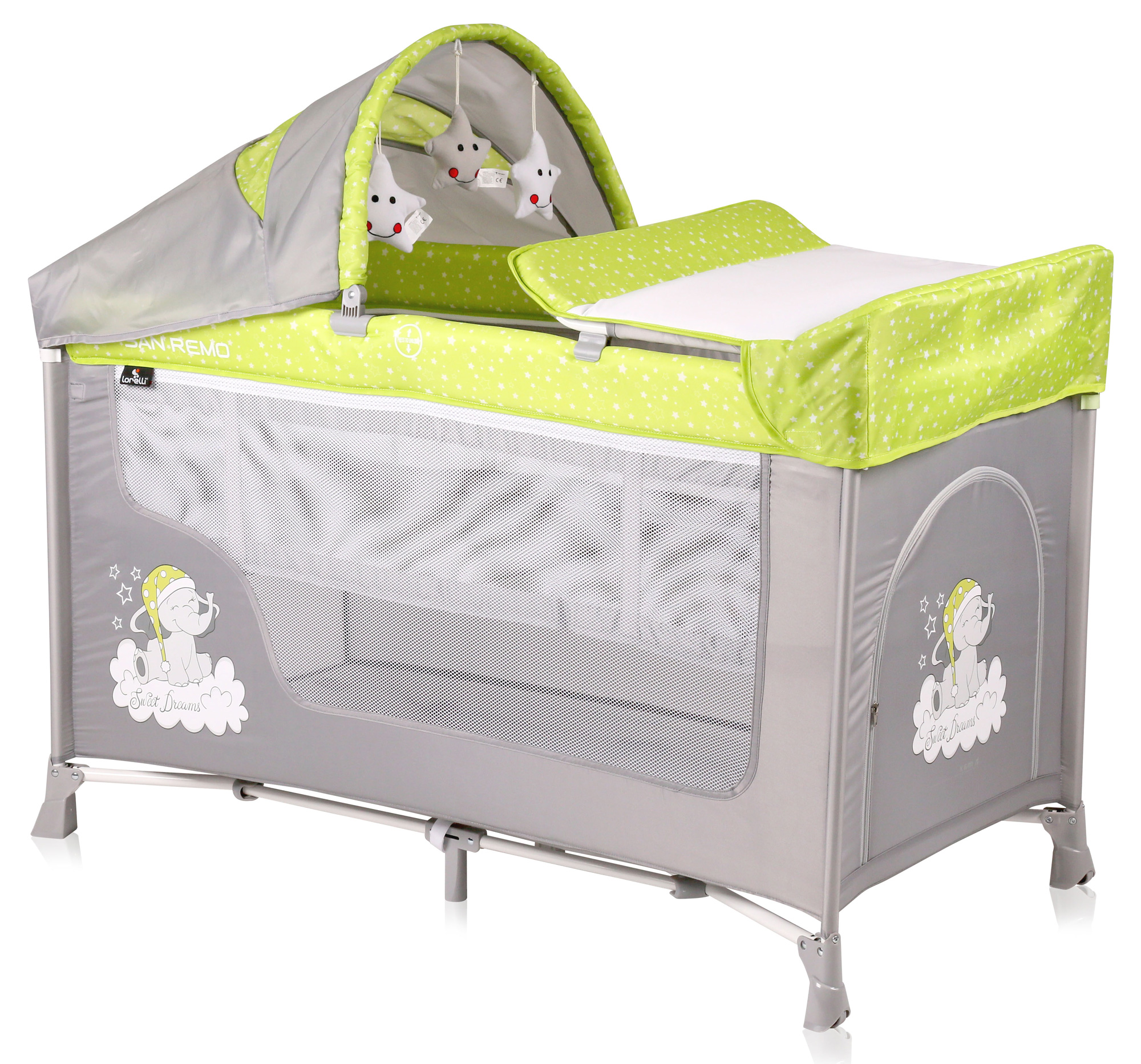 Манеж-кровать LORELLI San Remo 2 Plus - Зелёно-серый / Green&Grey Elephants 1937