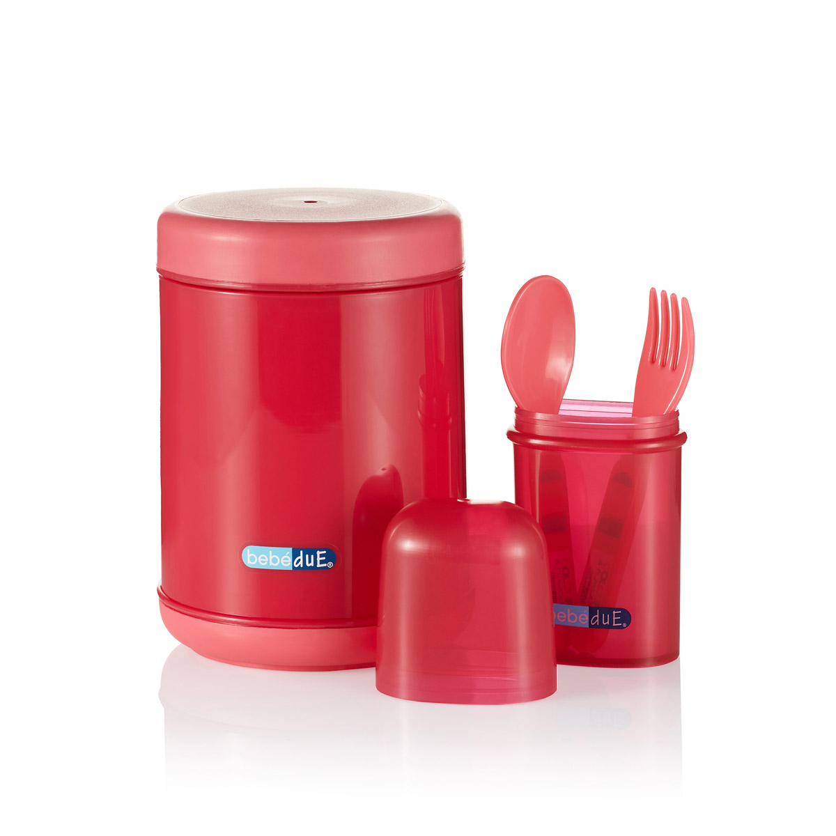Видео Набор для кормления Bebe Due: Термоконтейнер 500мл, пенал с ложкой и вилкой. - розовый-красный