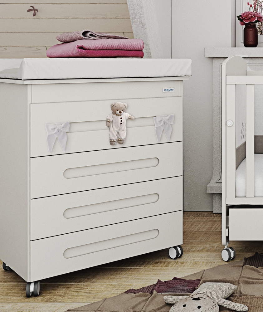 Пеленальный комод Micuna Dou-Dou B-1720 гармонично сочетает в себе дизайн простых, лаконичных форм и высокую практичность. Удобен в эксплуатации, станет настоящим помощником родителям младенца, требующего к себе так много внимания, значительно сэкономит их время, силы и место в доме. Включает в себя пеленальную поверхность, расположенную под ней анатомическую ванночку для купания младенца и вместительные ящики для детских вещей. Приобретение данного предмета мебели сделает процедуру ухода за ребёнком более простой и комфортной для родителей и для малыша. Выполнен комод из высококачественных материалов, выкрашен красками на водной основе, покрыт нетоксичными лаками, имеет приятный декор. Мобильные колёсики со стопорами позволяют перемещать комод по дому туда, где он наиболее органично впишется в дизайн детской комнаты, сделав интерьер ещё более завершенным. Когда малыш подрастёт, ванночку и пеленальную доску с комода можно убрать.