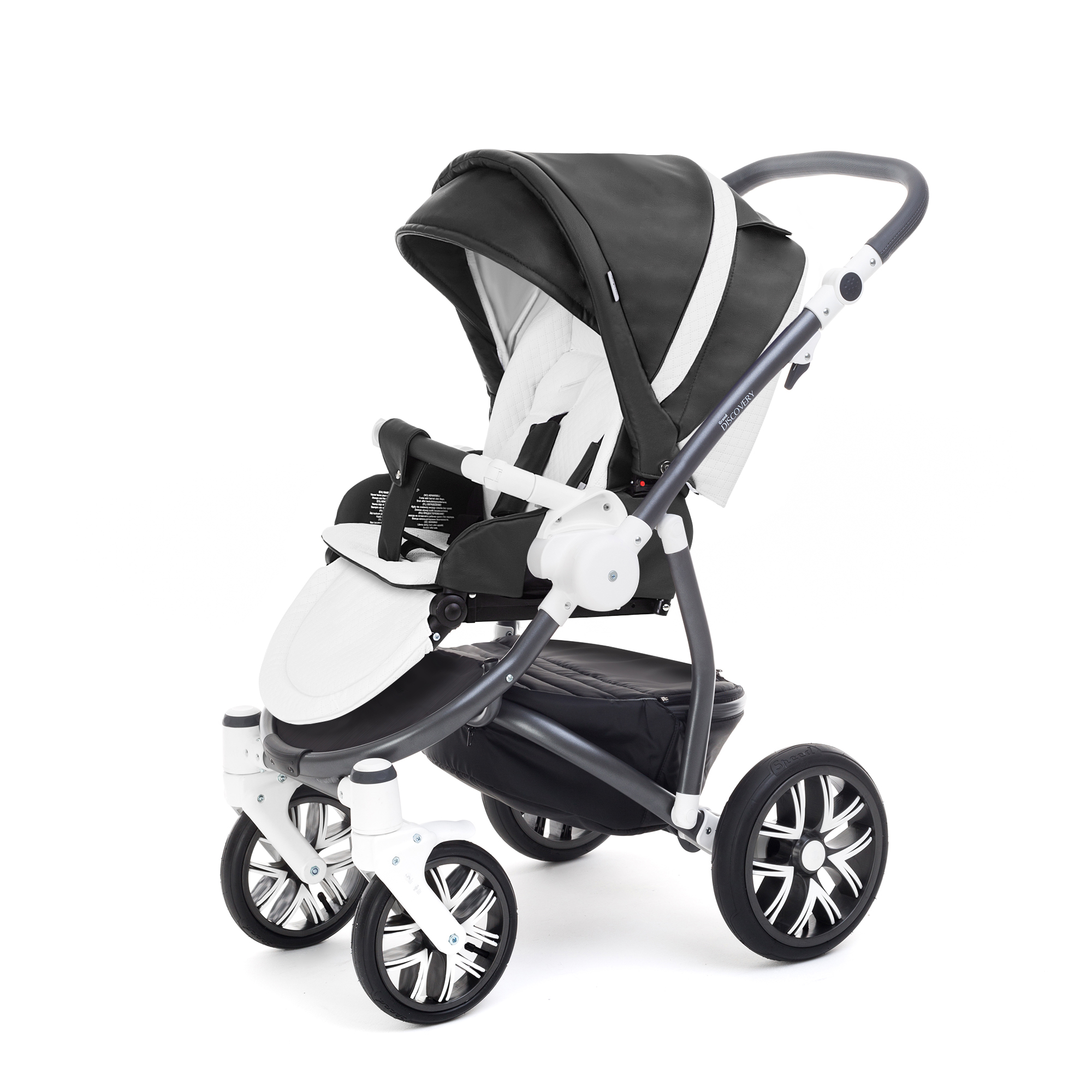Прогулочная коляска Esspero Grand Discovery (шасси Graphite White) - это ультрасовременное, компактное и устойчивое шасси, на которое поставлен вместительный и комфортный прогулочный блок, обшитый экокожей. Элегантная и практичная, экокожа проста в уходе, прочна и износостойка, не деформируется от жары, влаги и мороза, а выглядит при этом стильно и красиво. Прогулочный блок имеет весь необходимый функционал, как и шасси, оснащённое универсальной системой easy-fix с возможностью реверсивной установки прогулочного блока - как лицом к заботливой и внимательной маме, так и лицом к большому и интересному окружающему миру, а значит коляска прослужит вам в разных вариациях не один год, начиная с возраста 6 месяцев и до 3-х лет. Регулируемый для отдыха малыша в горизонтальное положение наклон спинки сидения, большой раскладной капюшон для защиты от непогоды и в жару, ремни безопасности, съёмный поручень-бампер, ручка с изменяемой под рост любого родителя высотой, надувные колёса с высокой проходимостью и маневренностью - это транспортное средство отлично подходит для ежедневных прогулок в любое время года. Шасси складывается компактной книжкой и не требует много места для хранения, а также помещается в стандартный багажник автомобиля, позволяя перевозить транспортное средство малыша с собой.