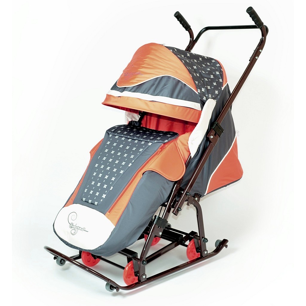 Санки-коляска RT СКОЛЬЗЯШКИ "Мозаика" - коричневый-терракотовый-светло-бежевый
