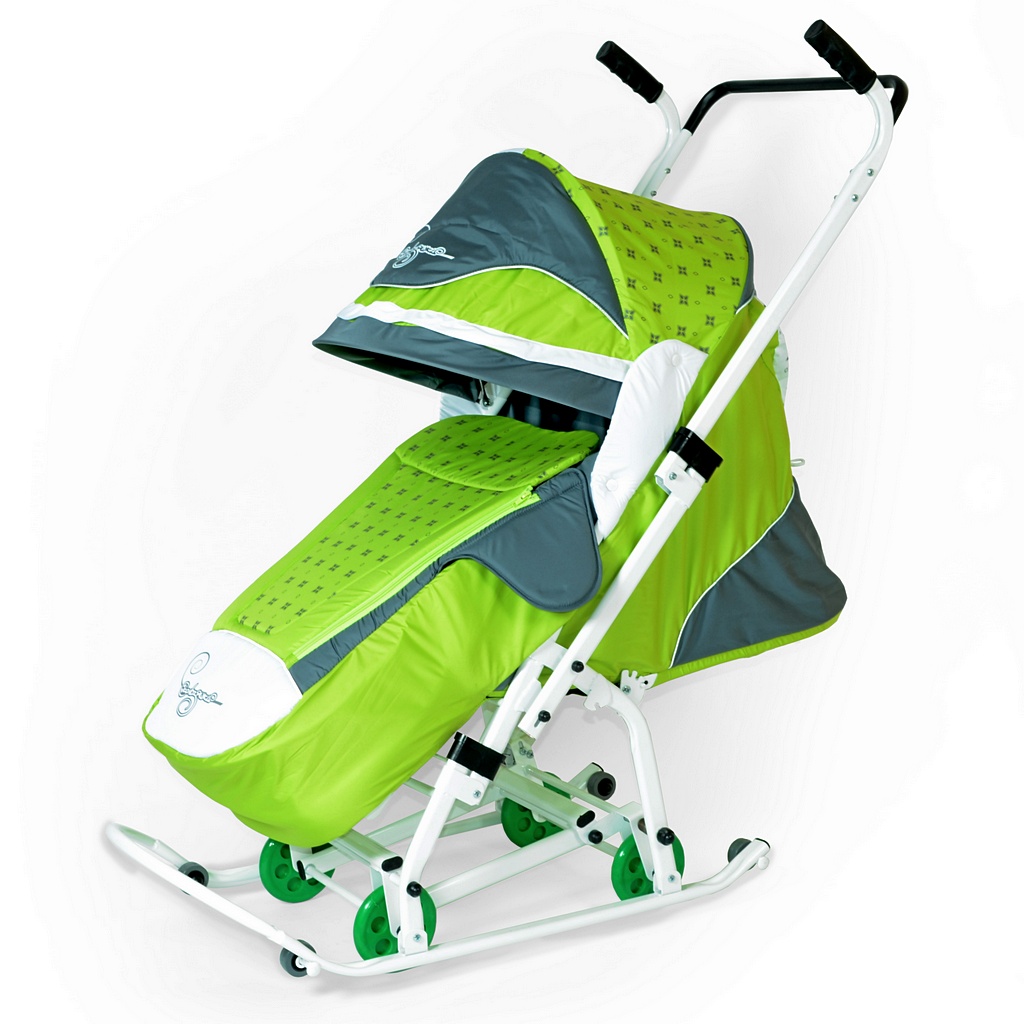 Санки-коляска RT СКОЛЬЗЯШКИ "Мозаика" - салатовый-серый-белый