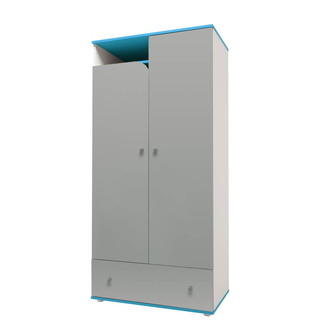 Шкаф двухсекционный Polini kids Sky 880 украсит детскую комнату, позволит грамотно расположить все вещи благодаря своей функциональности. Шкаф Полини кидс скай состоит из 2-х секций, которые снабжены полками и штангой для вешалок. Модель оснащена глубоким ящиком в основании, где можно хранить игрушки и постельное белье. Ящик расположен на маленькой высоте, поэтому ребенок с ранних лет может самостоятельно наводить порядок и укладывать вещи. Цвет мебели не утяжеляет пространство, идеально вписывается в комнату как девочки, так и мальчика, сочетается практически с любой мебелью детской. Шкаф украшен голубыми деталями сверху и снизу.