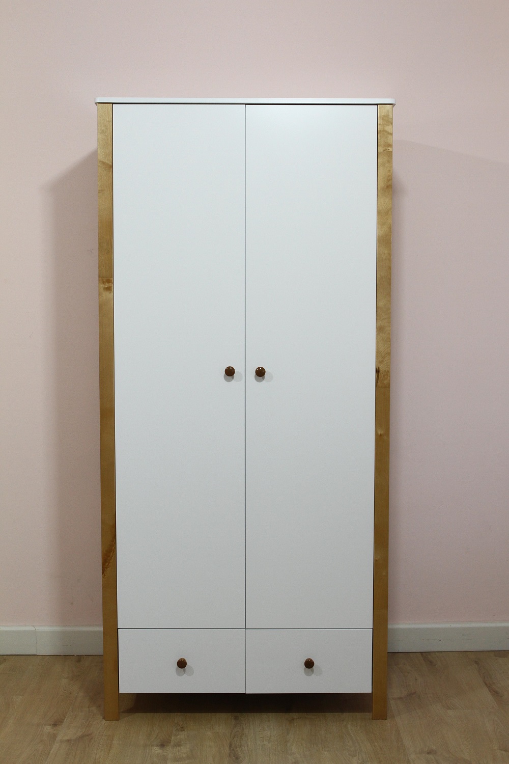 Шкаф комбинированный: каркас белый, ножки и ручки медовые.