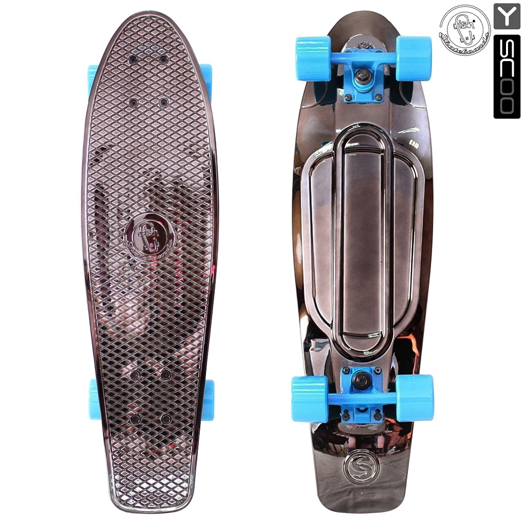 Скейтборд Y-SCOO Big Fishskateboard metallic 27" - BLACK BRONZAT/blue