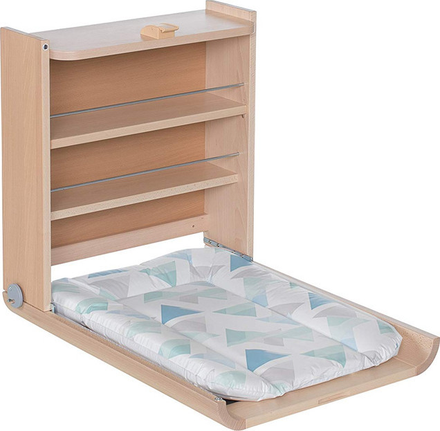 При помощи усиленных подвесов этот пеленальный стол легко и надежно крепится на стену. В сложенном состоянии представляет собой компактный настенный шкафчик, который также можно использовать как доску для записей, где можно отмечать все важные события в жизни ребенка.