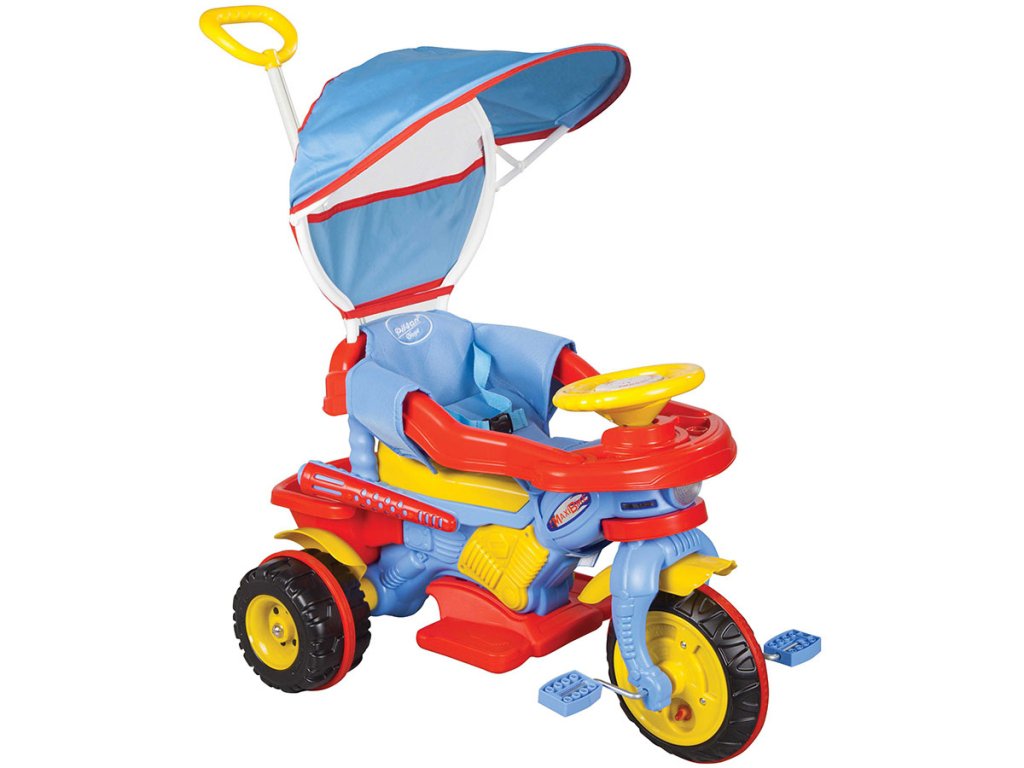 Трехколесный велосипед Pilsan "Maxi" с родительской ручкой - красно-сине-желтый