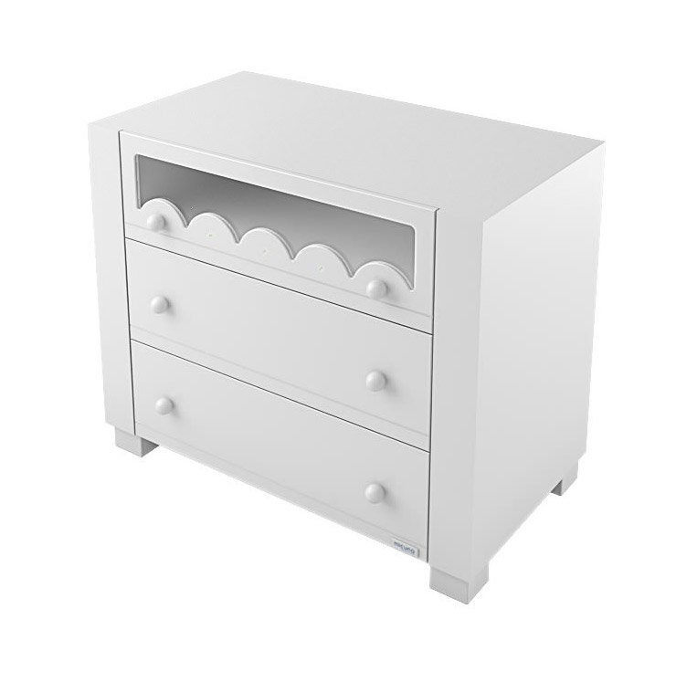 Тумба Micuna Amelia Aran Luxe CO-1717 – стильная и оригинальная модель, украшенная кристаллами Сваровский с резной панелью и вставкой из матового стекла, тремя большими ящиками, в котором можно разместить разнообразные детские вещи в количестве.  Ящики бесшумно скользят по специальным металлическим направляющим, а надёжные стопоры вовремя «останавливают» движение так, что ящик не выпадет наружу. Гипоаллергенные краски на водной основе и нетоксичные лаки, прочная буковая древесина — фурнитуру только высокого качества использует при изготовлении своей продукции испанский производитель Micuna, она не оказывает воздействия на здоровье малыша и гарантирует заботливым родителям спокойствие во время всего срока эксплуатации. На вместительной поверхности функциональной тумбы можно разместить пеленальную доску для ухода за малышом.