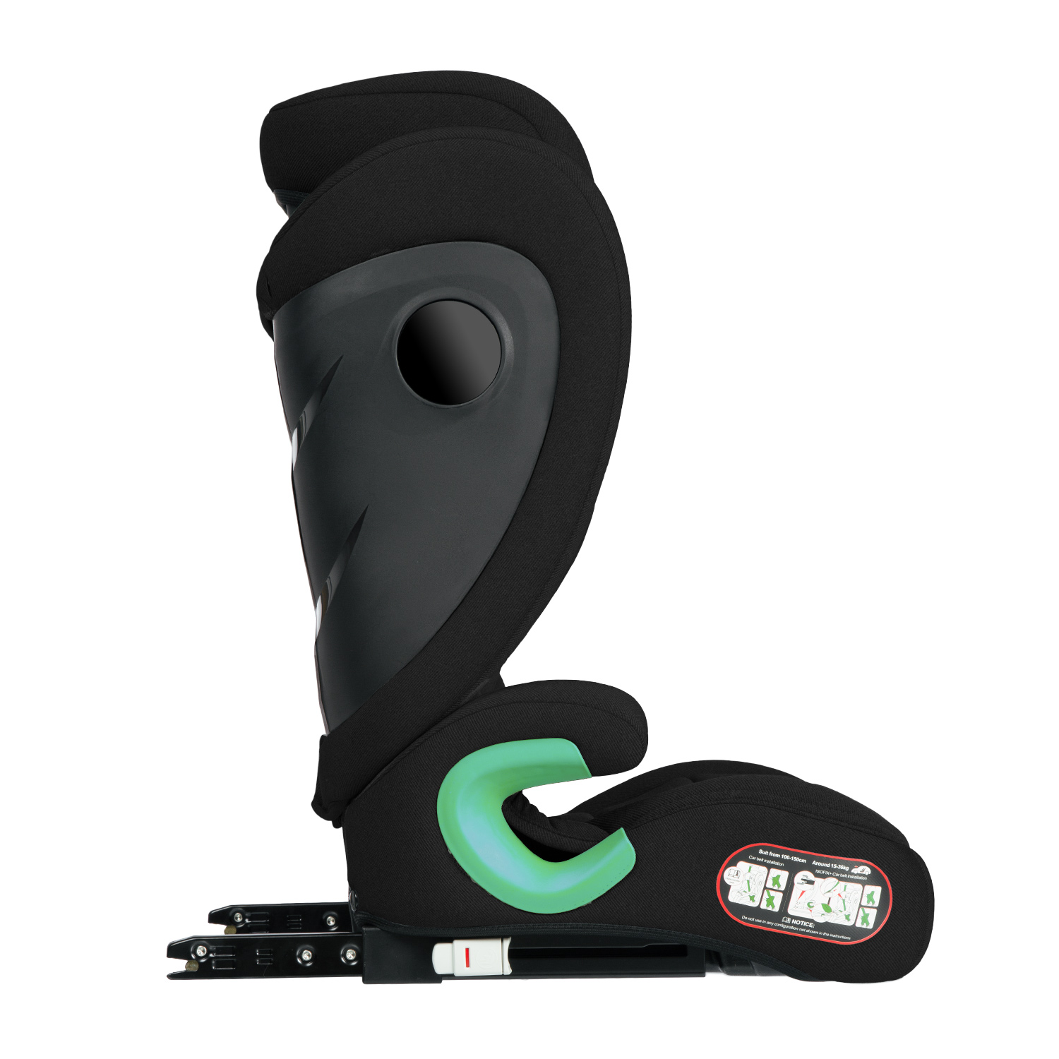 - фиксируется с помощью системы крепления Isofix или при ее отсутствии с использованием штатных 3-х точечных ремней безопасности;