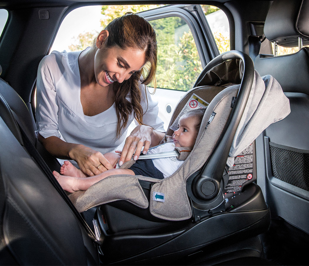 • крепится на заднем сидении автомобиля штатными ремнями безопасности или на автобазы Inglesina;