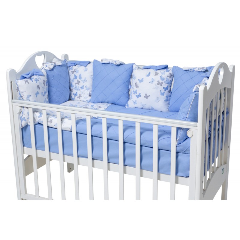 Подушки-бортики - 12 шт. 33х33 см. Пододеяльник - 1 шт. 110х125 см. Наволочка - 1 шт. 40х60 см. Простынь на резинке - 1 шт. 120х60 см.
