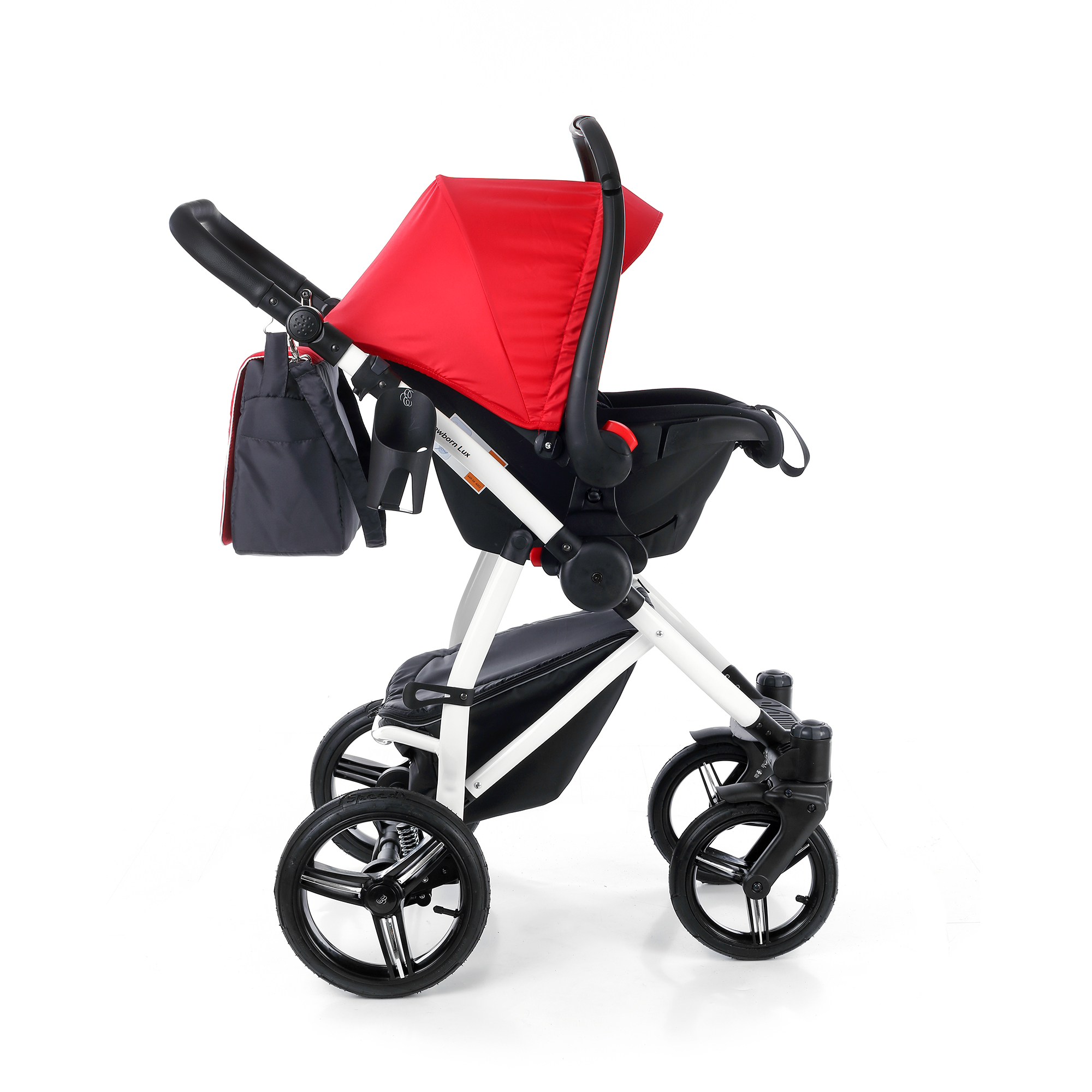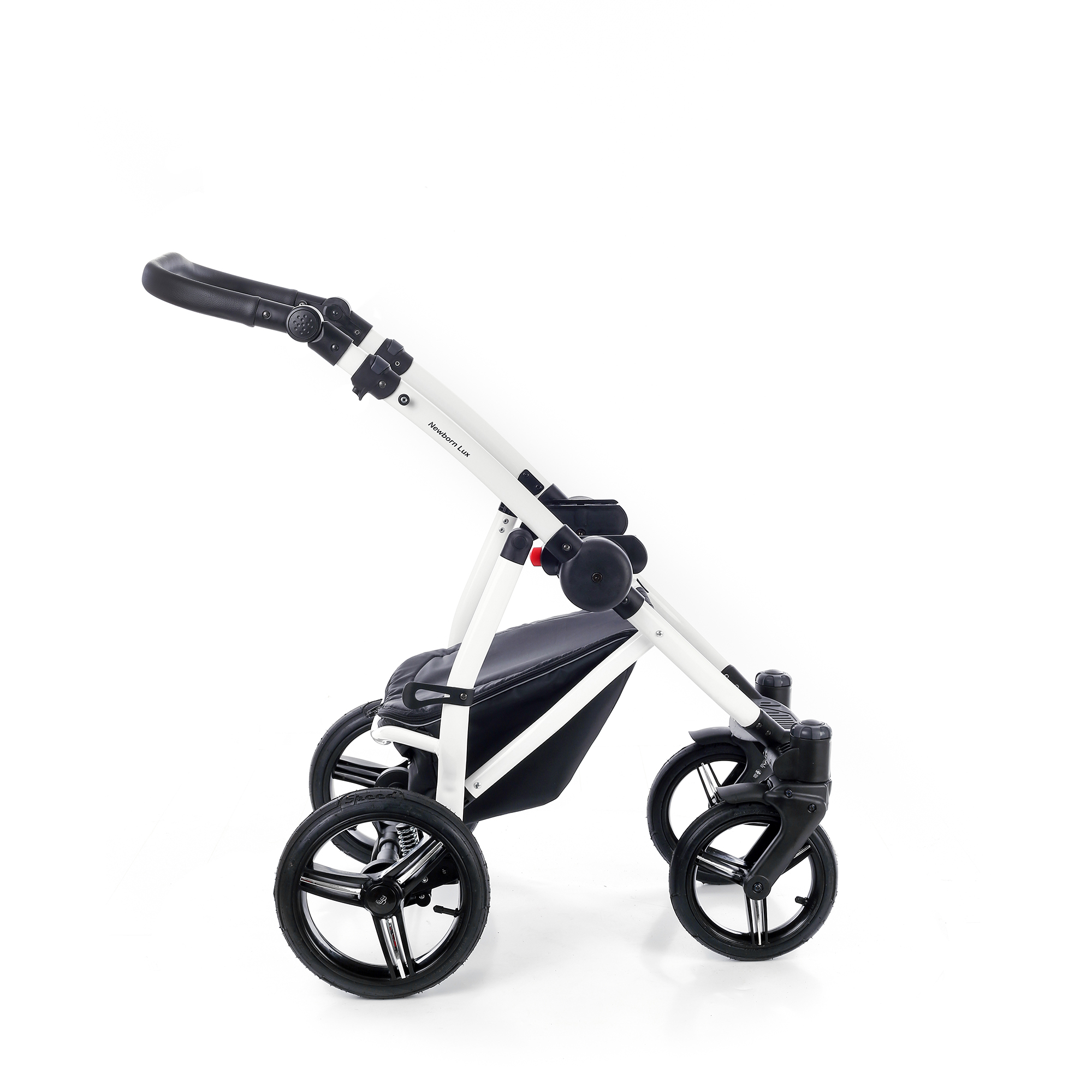 Коляска 2 в 1 Esspero Newborn Lux 2016 Alu (шасси Black) – это прекрасная новинка 2015 года от компании Esspero. Данная модульная коляска получила обновленное алюминиевое шасси черного цвета, на которое можно устанавливать все входящие в комплект модули в двух направлениях движения. Коляска получилась достаточно маневренной и проходимой. За первое отвечает передняя пара поворотных колес с возможностью зафиксировать их в одном положении. Второе стало возможным благодаря оснащению шасси коляски надувными колесами из каучука увеличенного диаметра и хорошей системе амортизации. В комплекте к данной коляске идет отличная люлька для новорожденных. При помощи внешних регуляторов в ней Вы всегда сможете установить необходимую высоту подголовника для ребенка, а также задать необходимую интенсивность поступления воздуха внутрь люльки через ее дно. Кроме того, она оснащена объемным регулируемым капюшоном, который всегда сможет укрыть малыша от палящих солнечных лучей. Прогулочный вариант данного транспортного средства имеет пятиточечные ремни безопасности с мягкими плечевыми накладками, съемный бампер перед ребенком и паховый ремень. Все это обеспечивает защиту от случайных выпадений. Возможность опустить спинку сидения в положение для отдыха и регулировать подножку по высоте позволяет маленькому пассажиру всегда отдохнуть во время прогулки.