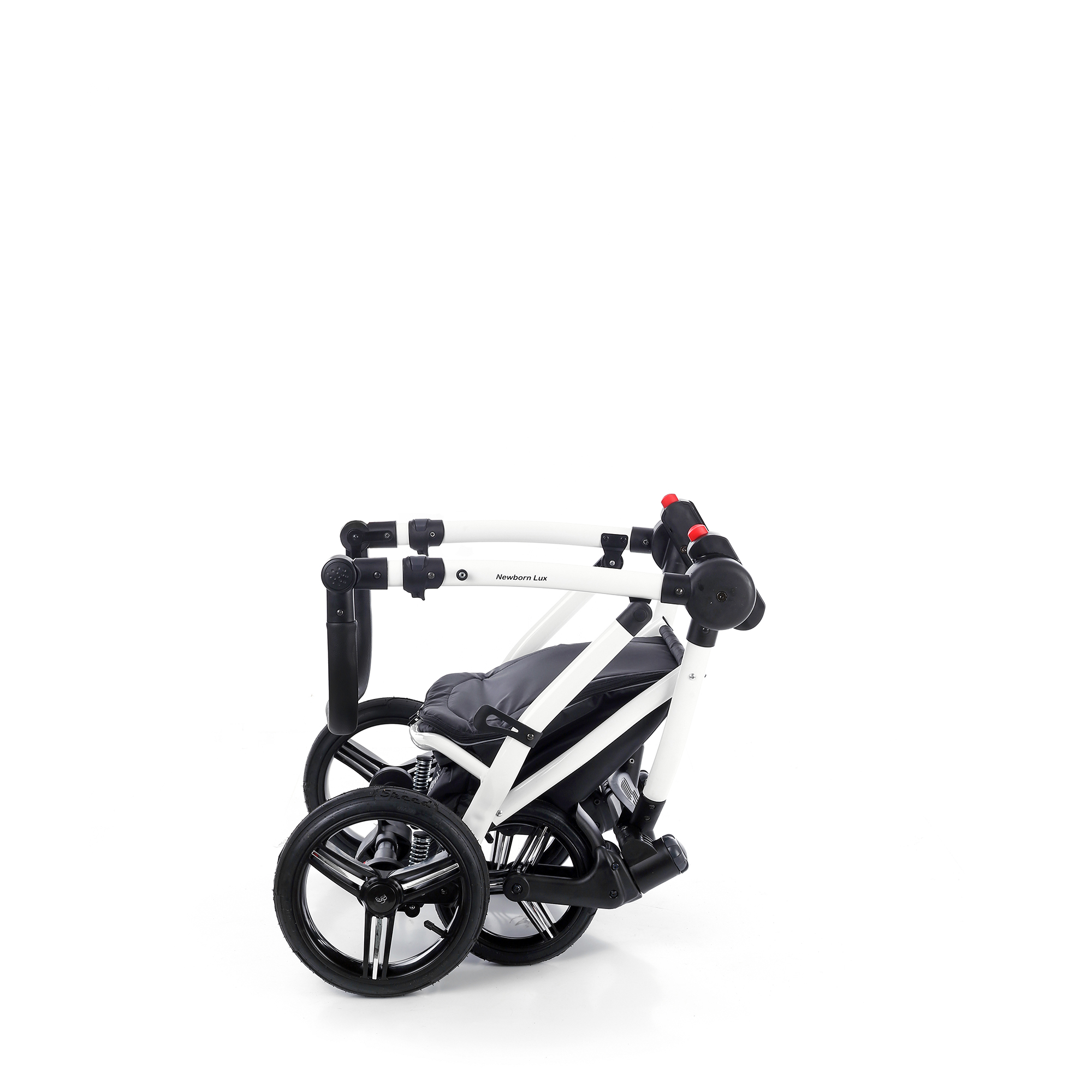 Коляска 2 в 1 Esspero Newborn Lux 2016 Alu (шасси White) – базируется на новом обновленном шасси серии Newborn Lux. Оно получило стабилизацию передних колес и закрытую грузовую корзину, а также был доработан механизм сложения. Оба модуля, входящие в комплект, могут устанавливаться на шасси реверсивно, что весьма удобно, когда Ваш малыш захочет видеть маму перед собой. Наличие каучуковых надувных колес увеличенного диаметра наделяют коляску высокой степенью маневренности, а их передняя пара является поворотной и может фиксироваться в одном положении. Для удобства использования предусмотрена регулируемая по высоте ручка. Оба съемных модуля имеют внешнее покрытие из не продуваемой ткани с влагоотталкивающей пропиткой, объемные регулируемые капюшоны и утепленные накидки на ножки. В люльке можно изменять угол высоты подголовника и интенсивность поступления воздуха внутрь люльки через специальные отверстия в ее нижней части. Прогулочный вариант коляски содержит все необходимые средства безопасности, включая пятиточечные ремни с мягкими плечевыми накладками, съемный поручень перед ребенком и паховый ремень. В случае необходимости ребенку отдохнуть во время прогулки, достаточно опустить спинку сидения в соответствующее положение и поднять регулируемую подножку.