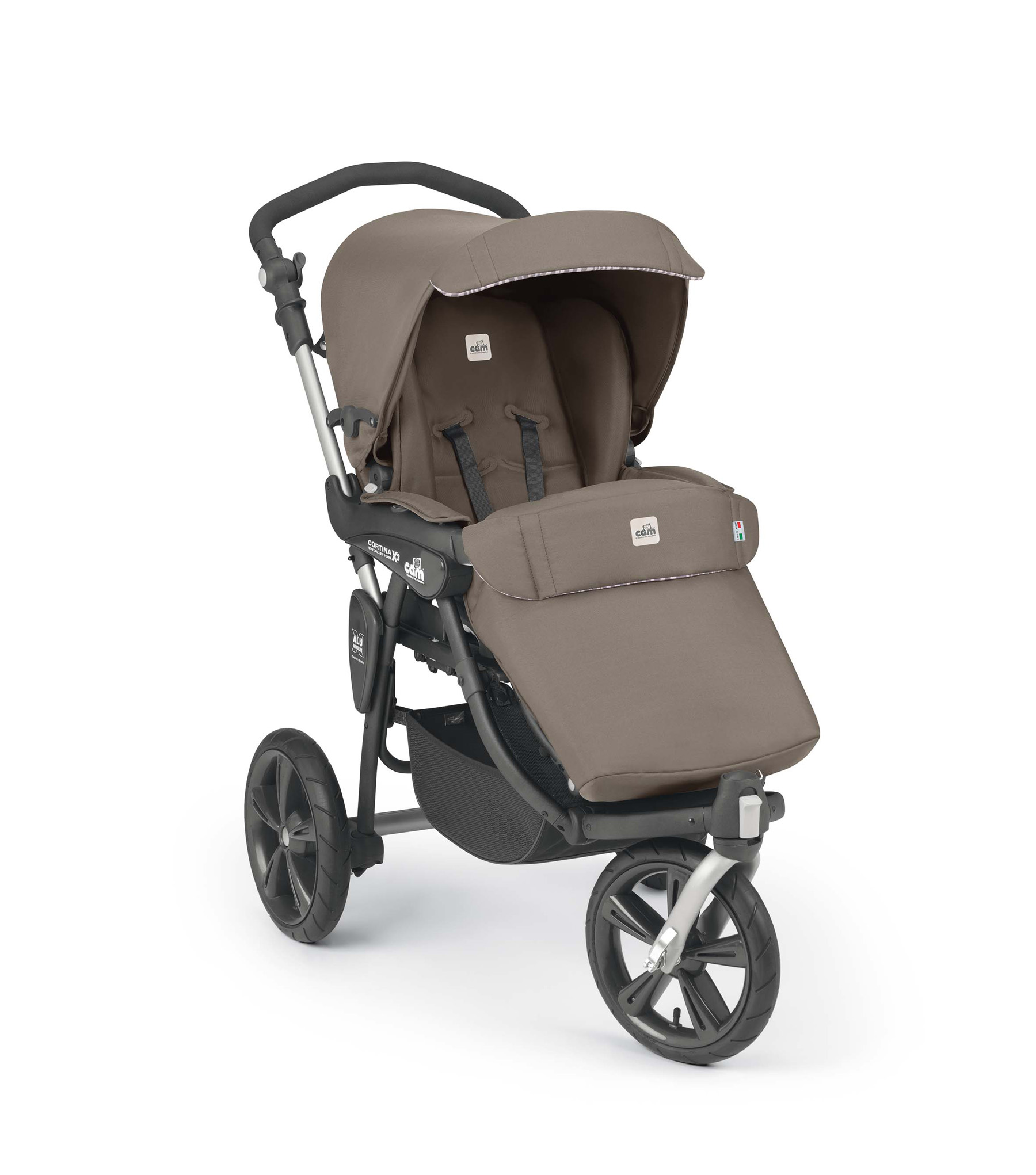Очень компактная, практичная и безопасная. Трёхколёсная прогулочная коляска имеет регулируемую в 4 положениях спинку (в том числе и горизонтальное), подлокотники и переднее ограждение. Новая система позволяет регулировать спинку и подножку одним движением. Коляска снабжена надувными колёсами (переднее колесо ведущее),поворотное на 360*, регулируемой ручкой, системой тормозов (на 2 задних колеса), алюминиевой рамой, широкой алюминиевой подножкой, универсальным дождевиком, хозяйственной корзиной.