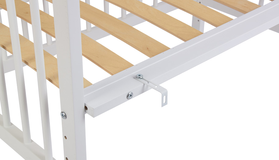 Кровать крепится к родительской кровати с помощью специальных крючков,входящих в комплект.