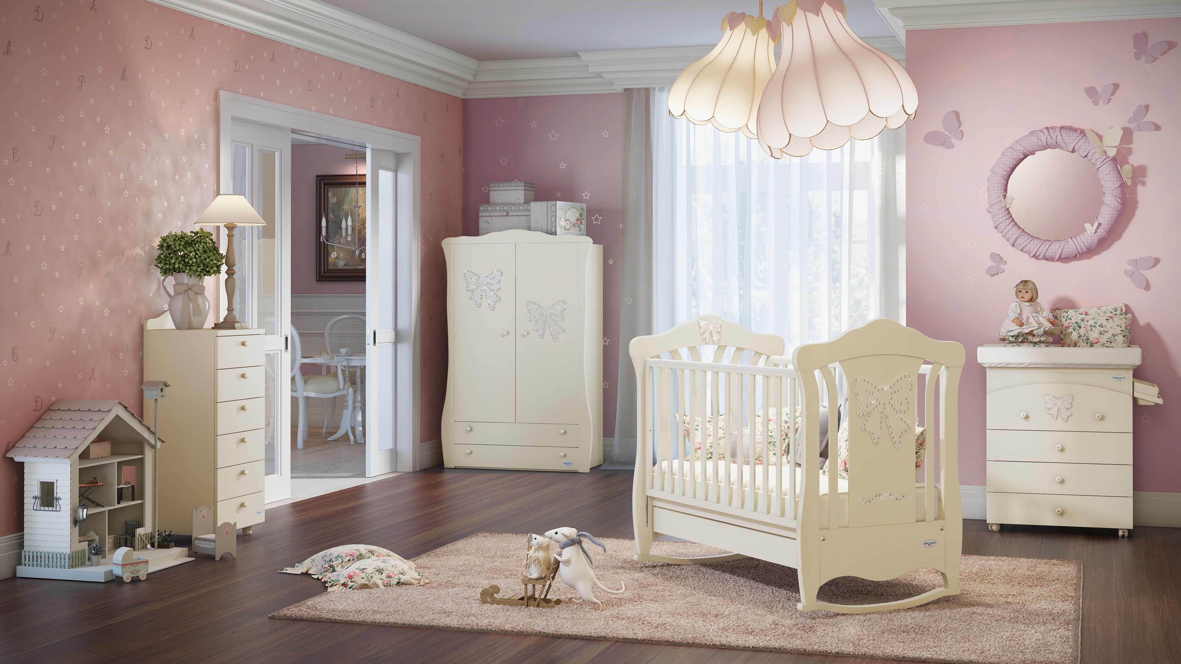 Детская кроватка-качалка Baby Italia Mimi из натурального массива бука – идеальный вариант для малышей до 3-4 лет. Мебель покрыта нетоксичными лаками и красками, не вызывает аллергических реакций у малышей. Ортопедическое основание кроватки помогает позвоночнику ребенка правильно формироваться. Боковины легко регулируются, одну из них можно снять. Дно ставится в одно из двух положений. С помощью специального механизма укачать малыша не составит проблем. Выдвижной ящик вместит постельное белье или другие необходимые аксессуары. Прорезиненные колесики не поцарапают паркет или ламинат. Нежный дизайн дополнен аппликацией в виде бантика и кристаллами Сваровски.