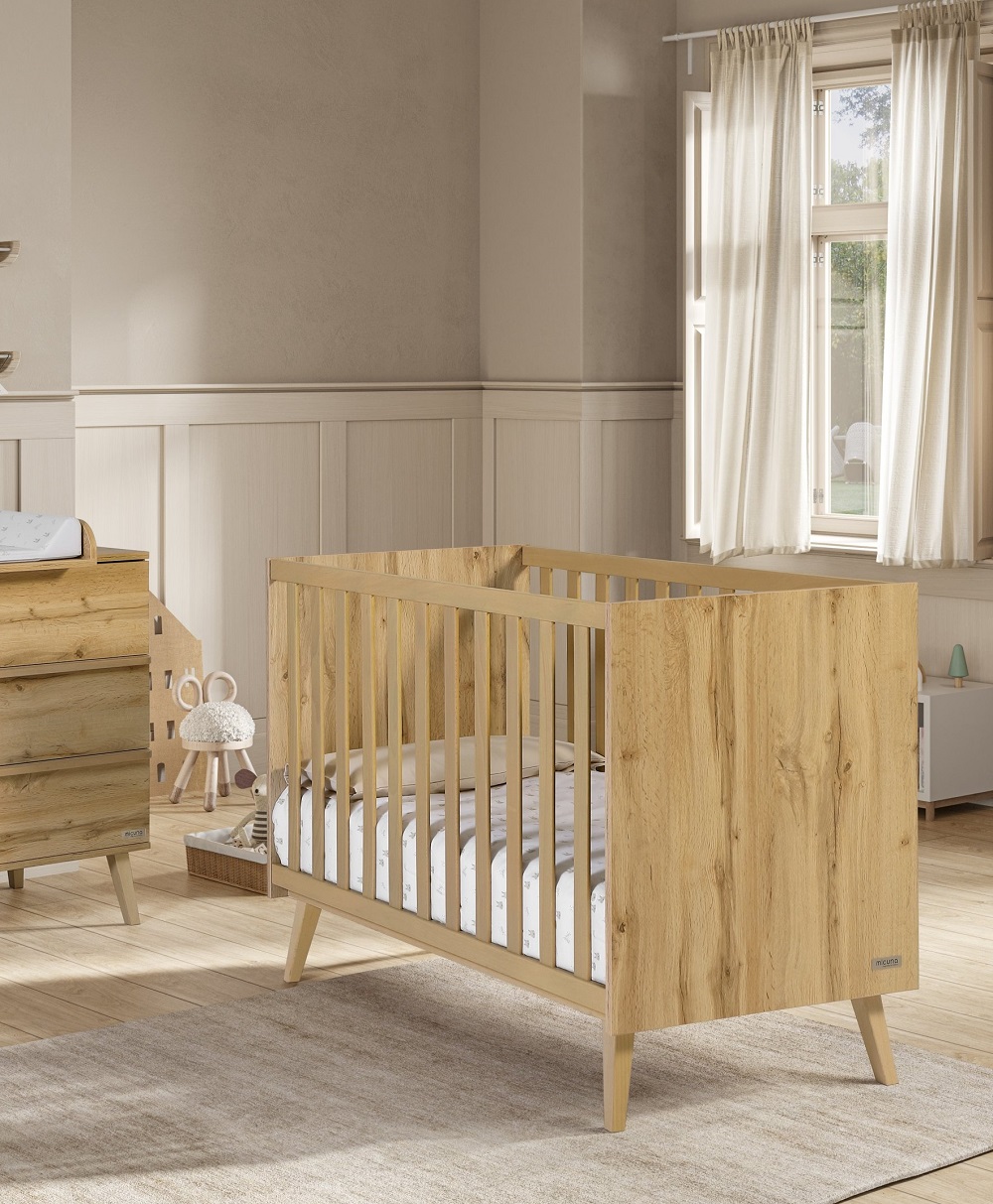 Вдохновленная природным стилем и изготовленная из древесины экологически устойчивых лесов, коллекция Martha, состоящая из кроватки, шкафа, ванны и комода, к которым можно добавить пеленальный столик, станет центром внимания в любой комнате. Кроватка 120x60, также доступная в размерах 140x70, которая превращается в небольшую кровать, будет сопровождать вашего ребенка по мере его взросления.