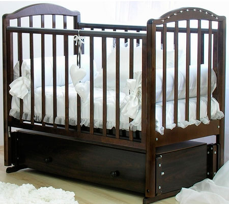 Плавный и бесшумный механизм продольного маятника имитирует направление движения при укачивании мамой – вдоль тела ребенка. Маятник имеет надежный механизм фиксации. Когда сплошная передняя панель перестанет быть необходимой – просто опустите или снимите ее. Силиконовые накладки для бортиков защитят десна малыша у которого режутся зубки . Расстояние между прутьями рассчитаны так, чтоб голова Вашего малыша не пролезла, а ручка не застряла. Удобный ящик на роликовых направляющих позволит хранить необходимые вещи в пределах досягаемости.