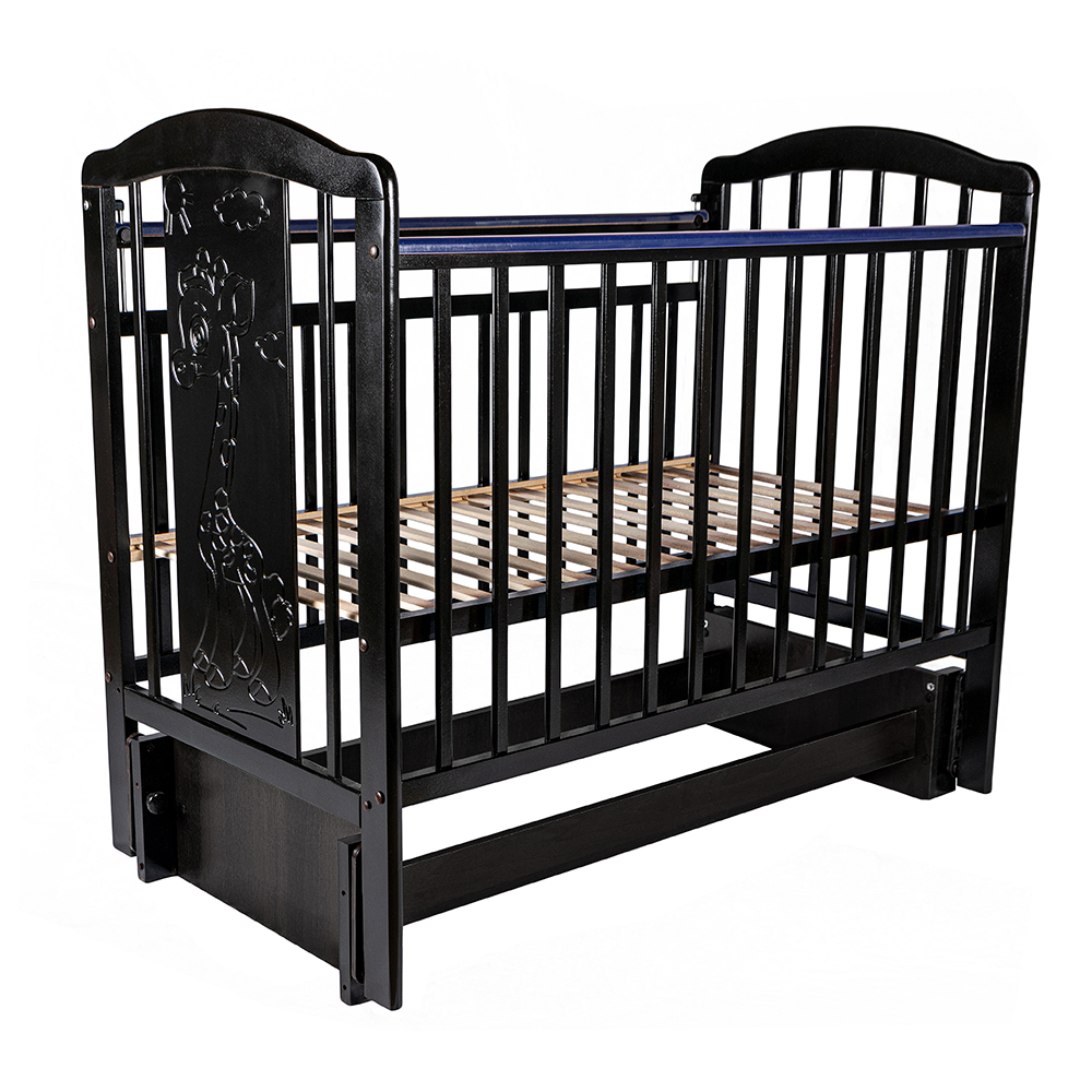 Элегантная, красивая и функциональная модель. Кроватку характеризует современный стиль (одна из спинок декорирована рисунком) и удобство в использовании. Маятник помогает укачивать новорожденного ребёнка в кроватке. На этапе сборки определяется в продольном или поперечном маятнике будет использована кровать.