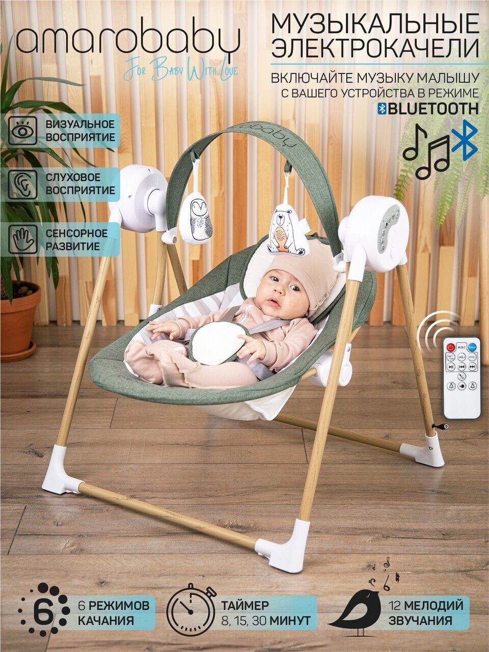 Детские электронные качели AmaroBaby WOODEN SWING: