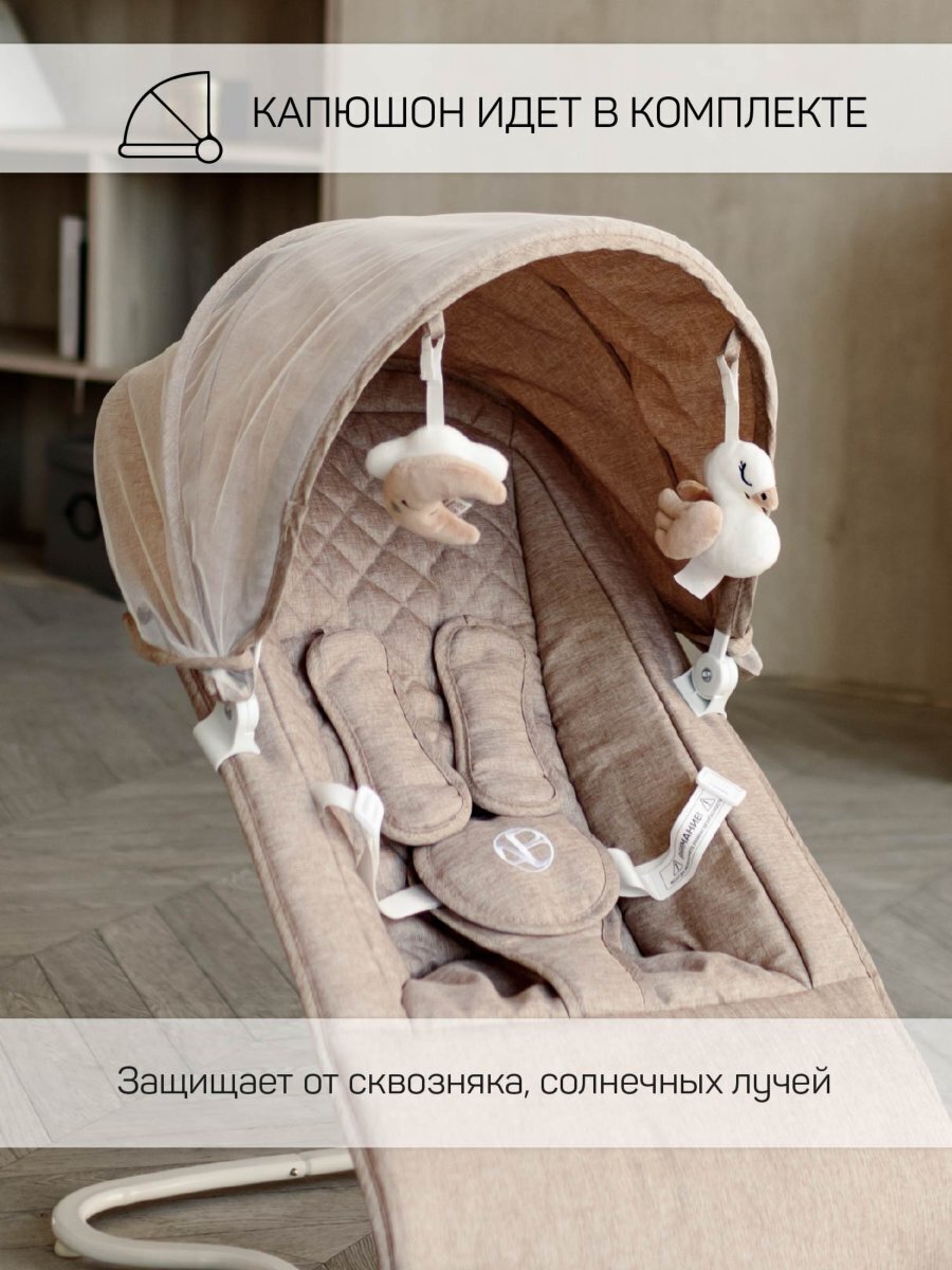 Электрокачели для новорожденных с пультом оснащены очаровательными мягкими игрушками, которые закреплены на капюшоне в непосредственной близости от ребенка. Это стимулирует развитие мелкой моторики рук и обеспечивает дополнительное развлечение для малыша.