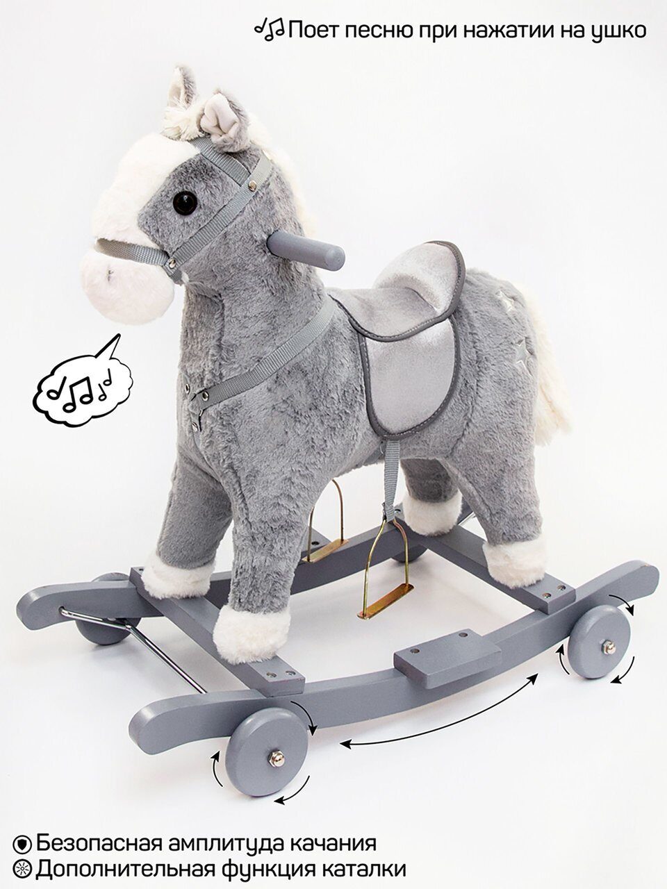 - Качалка-лошадка поет песню при нажатии на ушко.