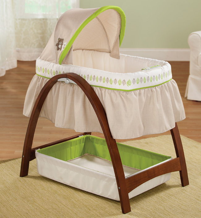 Колыбель Summer Infant BentWood – восхитительно нарядная, нежная и удобная кроватка для младенца, которая впишется в любой домашний интерьер. Тёмное дерево новозеландской сосны удачно оттеняют мягкие пастельные тона обивки и лиственный узор, изображённый по краю – светлая до прозрачности люлька будет успокаивающе действовать на малыша, находящегося в ней. Конструкция кроватки обладает большой устойчивостью, в такой можно без боязни оставить малыша, укрыв его большим защитным капюшоном, а расслабиться и уснуть ему помогут режим вибрации и колыбельные мелодии, собранные в музыкальном блоке, расположенном на люльке. Большая матерчатая корзина, находящаяся в основании кроватки, вместит в себя любимые игрушки малыша, предметы гигиены и ухода за ним и прочие необходимые вещи.
