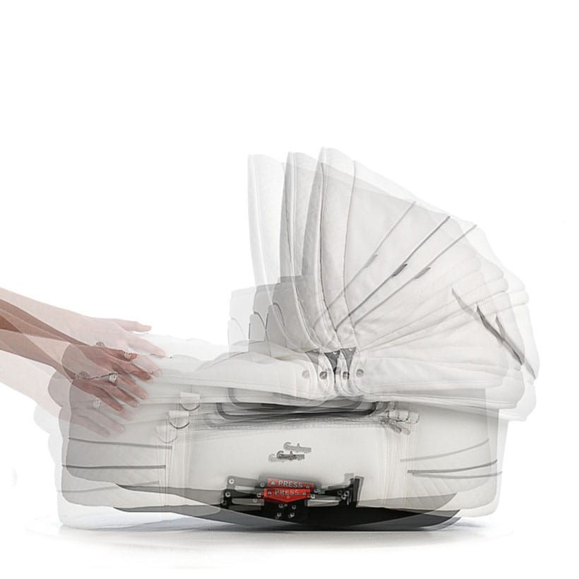 Просторная люлька рассчитана на малышей от 0 до 6 месяцев. Она обтянута водоотталкивающей тканью и снабжена регулируемым защитным козырьком. Пробковое дно люльки хорошо сохраняет тепло в холодное время года, а для того, чтобы избежать перегрева малыша в жаркие месяцы, в люльке имеется специальная система вентиляции.