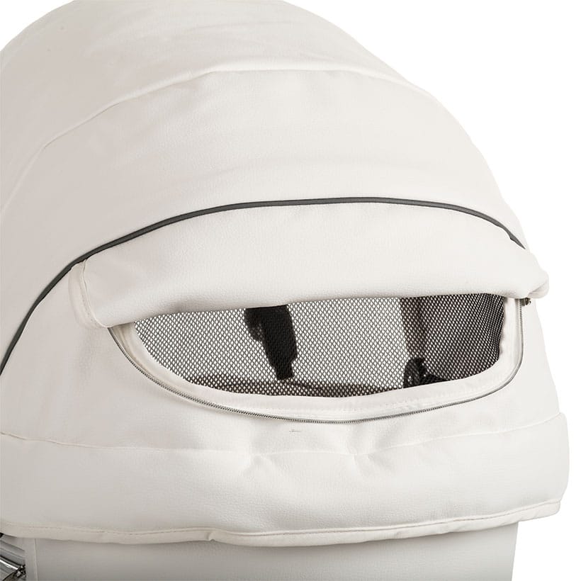 По мере взросления малыша люльку можно легко сменить на комфортный прогулочный блок. Спинка сидения имеет три уровня регулировки по высоте. Прогулочный блок оборудован пятиточечными ремнями, которые в сочетании со светоотражающими полосками обеспечат высокий уровень безопасности во время прогулок. Также он снабжен москитной сеткой и защитным капюшоном, который при необходимости легко и бесшумно складывается. Подножка прогулочного блока оснащена съемным двусторонним чехлом из водоотталкивающей ткани.