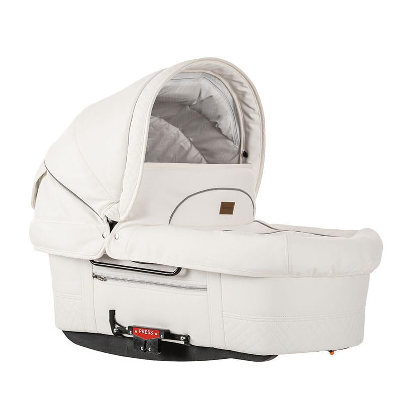Надежная и простая в использовании система фиксации позволяет легко и быстро сменить люльку на прогулочный блок или автокресло. Кроме того имеется возможность установки прогулочного блока в двух положениях.