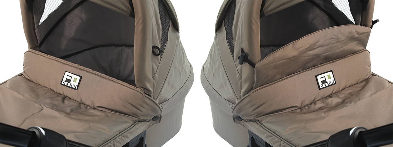 В набор 2 в 1 FD Design Cobra New дополнительно входят: сумка для мамы с пеленальным матрасом, большая корзина для маминых покупок и игрушек ребенка, москитная сетка, которая защитит кроху от назойливых насекомых.