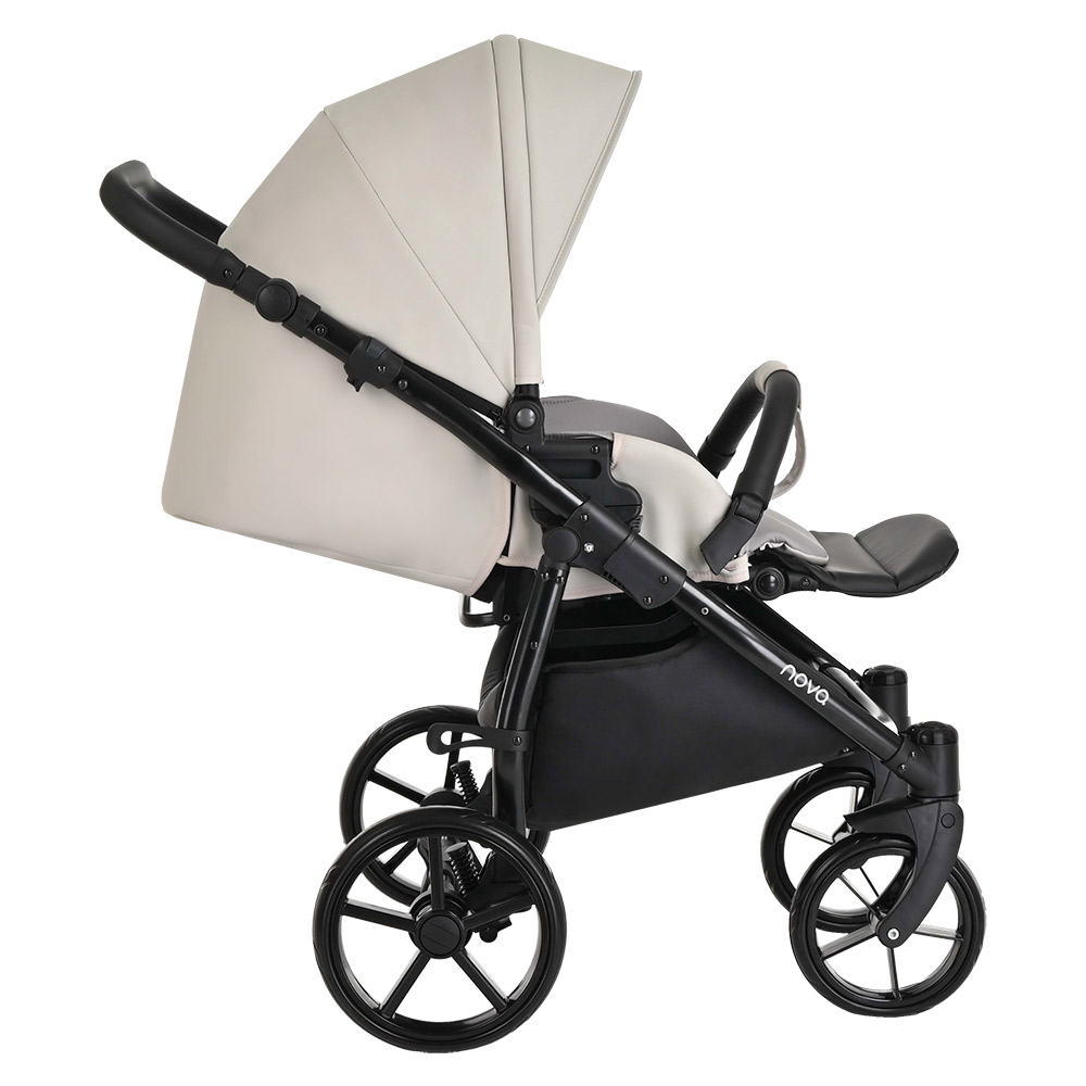 В большую и вместительную корзину поместится всё необходимое. Tutis Novo быстро и компактно складывается даже с прогулочным блоком. Просто сложите ручку, зажмите фиксаторы по бокам и потяните их наверх. Коляска сложится и займет совсем немного места.
