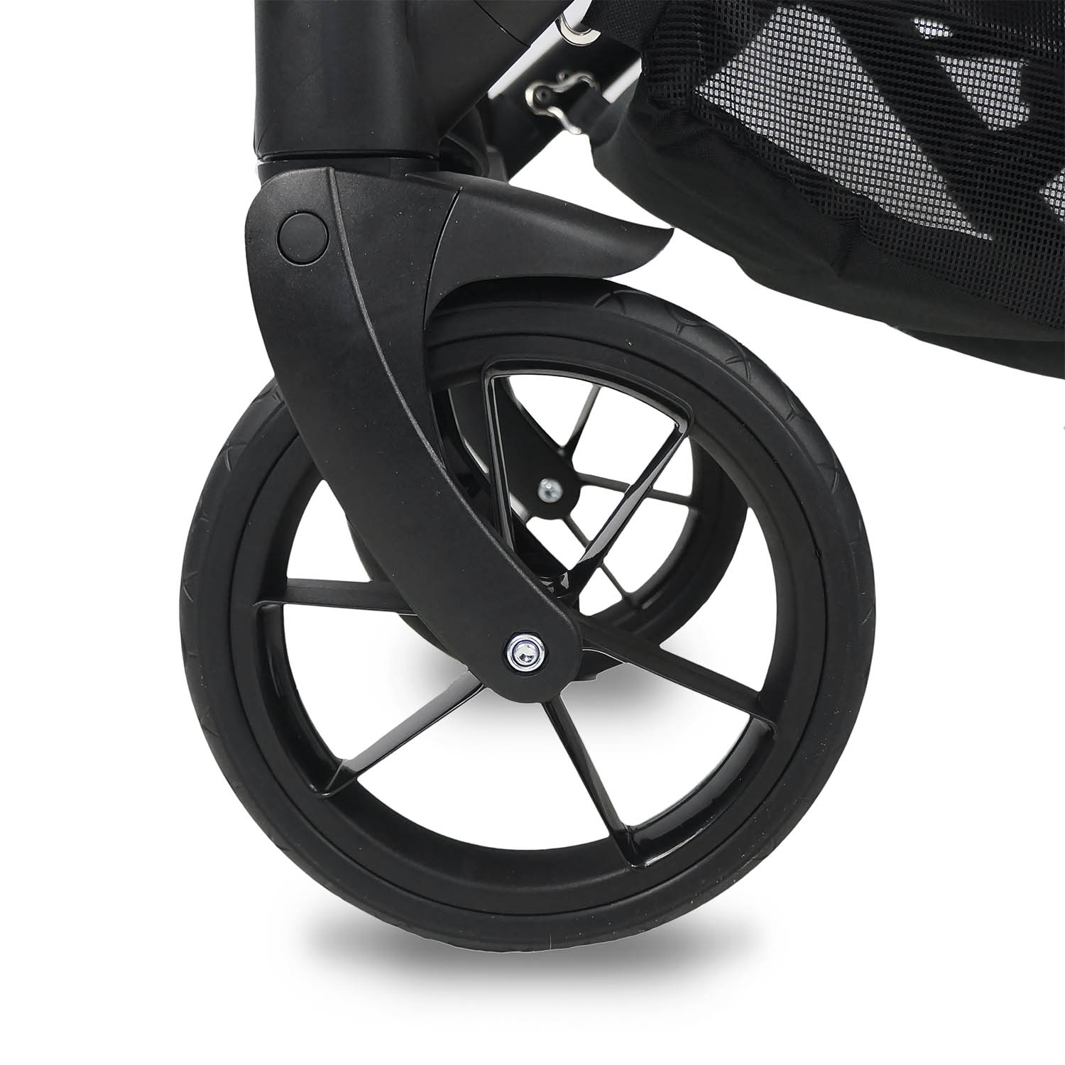 Даже самая неровная дорога нипочем этой коляске с двойной амортизацией - пружинная амортизация на задних колесах и дополнительная амортизация на раме. На передних колесах установлена система антишок. На задних колесах - система выдвижных осей. Система крепления One Touch позволит без труда менять блоки. Педаль центрального тормоза зафиксирует оба колеса одним нажатием и оставит обувь чистой. Гелевые колеса не боятся проколов и не требуют подкачки.